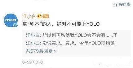不过就在黄旭的事刚刚平息没多久,又有人爆料表示与说唱圈紧密相连的yolo江小白对于杨和苏夺冠有极大看法,口口声声称杨和苏夺拿了“剧本”他的冠存在内幕,还表示杨和苏不可能出现在yolo音乐节之上,该言论已经传出立马引发了网友的讨论,而杨和苏也因此更深一步陷入内定门当中。