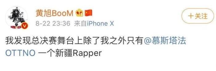 原来黄旭在赛后曾发文表示总决赛舞台上除了他就只有“幕斯塔法OTTNO”一个新疆rapper,其实本来这段话并没有什么问题,但是在如此敏感的时期突然做出这样的发言,难免会让人猜测黄旭意有所指,于是不少网友纷纷表示黄旭这是在吐槽总决赛上没有自家兄弟给他投票,并嘲讽杨和苏票数高全都是因为友情票。