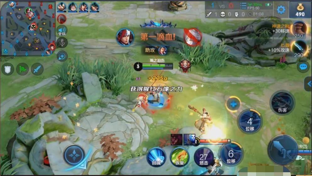 对面阵容四个辅助一个射手,梦泪都有点搞不懂谁打野了,看了一下之后才知道是姜子牙打野,这时梦泪已经自己乐得不行了,打完自己蓝BUFF就迫不及待地跑去对面红BUFF处,想看一下姜子牙是怎么打野的,开开眼。一个姜子牙打野肯定是慢的不要不要的,梦泪赶到的时候红BUFF还有一小半血,梦泪大笑着将红buff和姜子牙一起收了。