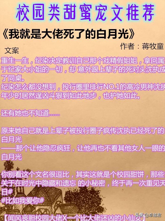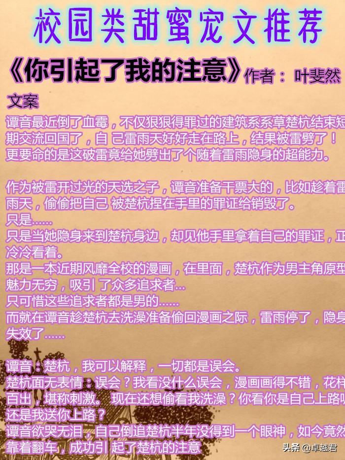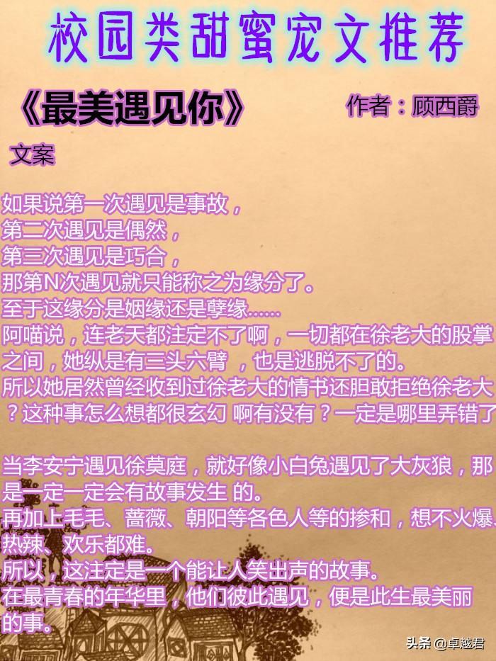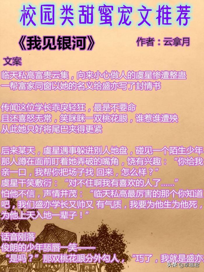 这期给大家推荐5本校园类的甜宠文。希望你们喜欢。