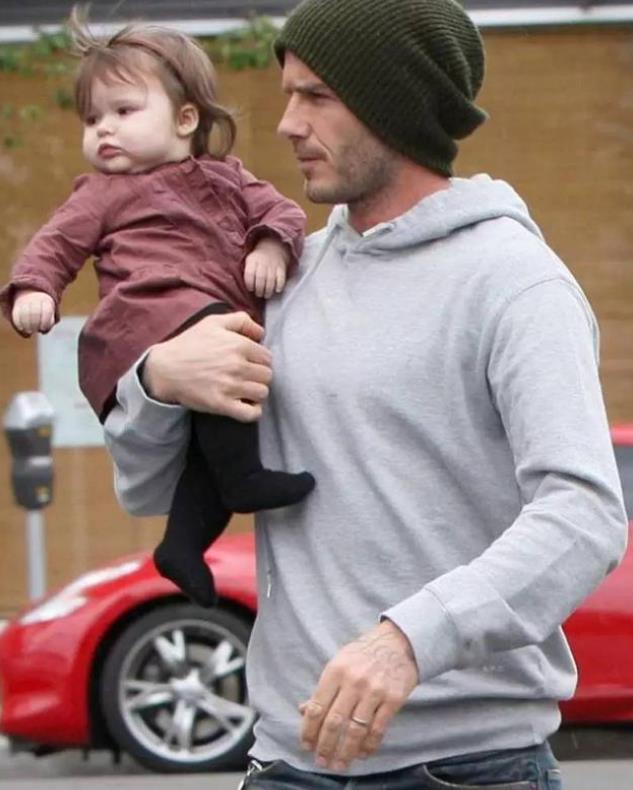 贝克汉姆女儿近照曝光,五官长开美得没边,网友:爸爸成小跟班