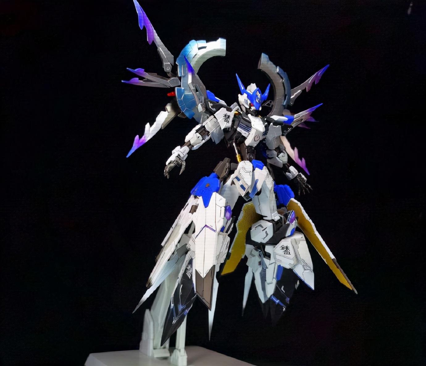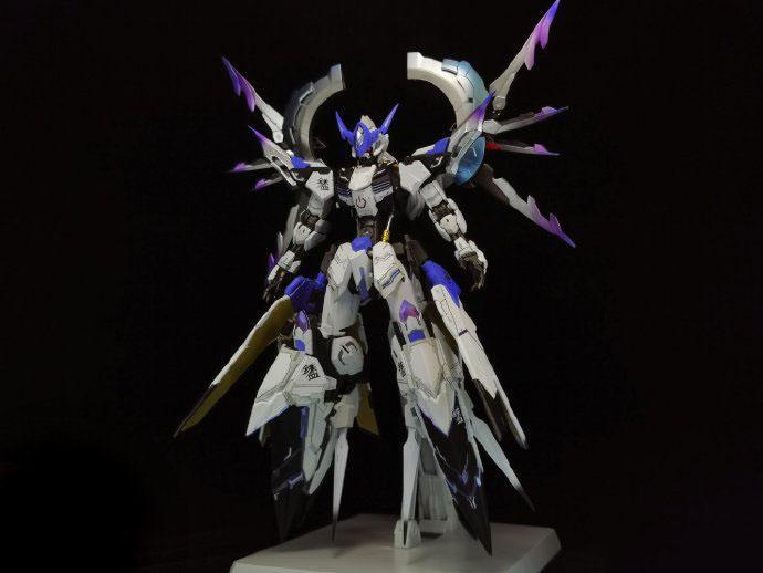 配色方面将原版模型的配色进行了改造,增加了渐变紫色和蓝色,搭配上大面积的白色外甲,大家感觉怎么样呢?是不是看起来很帅气呢?