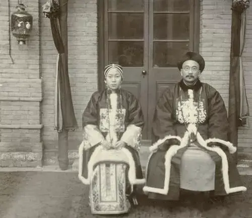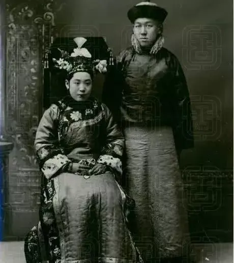 晚清时期的一对贵族夫妇,从照片中两人的姿态可以看出,该女子应该比他丈夫的地位高。