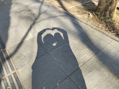 不巧的是黄金落叶期已过,孤零零的树枝上执着的挂着几片卷曲的黄叶,石板路也清扫的很干净,和爱人沐浴在阳光下比个爱心❤️吧!