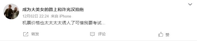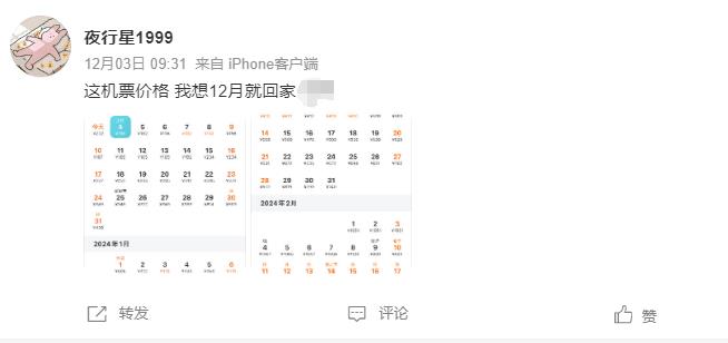 不少网友看到如此低价的机票后也纷纷留言,“看得我都想飞了”、“这机票价格,我想12月就回家”。