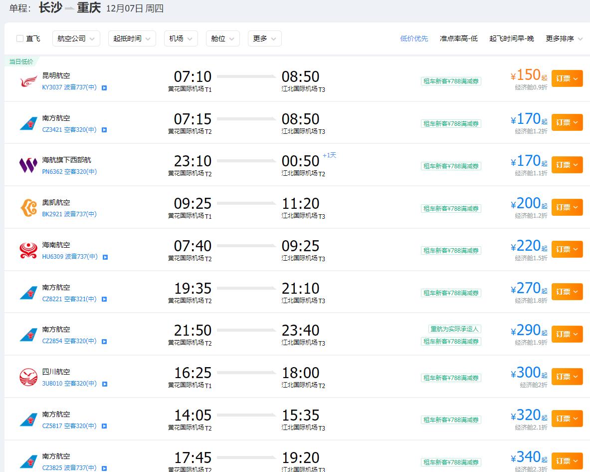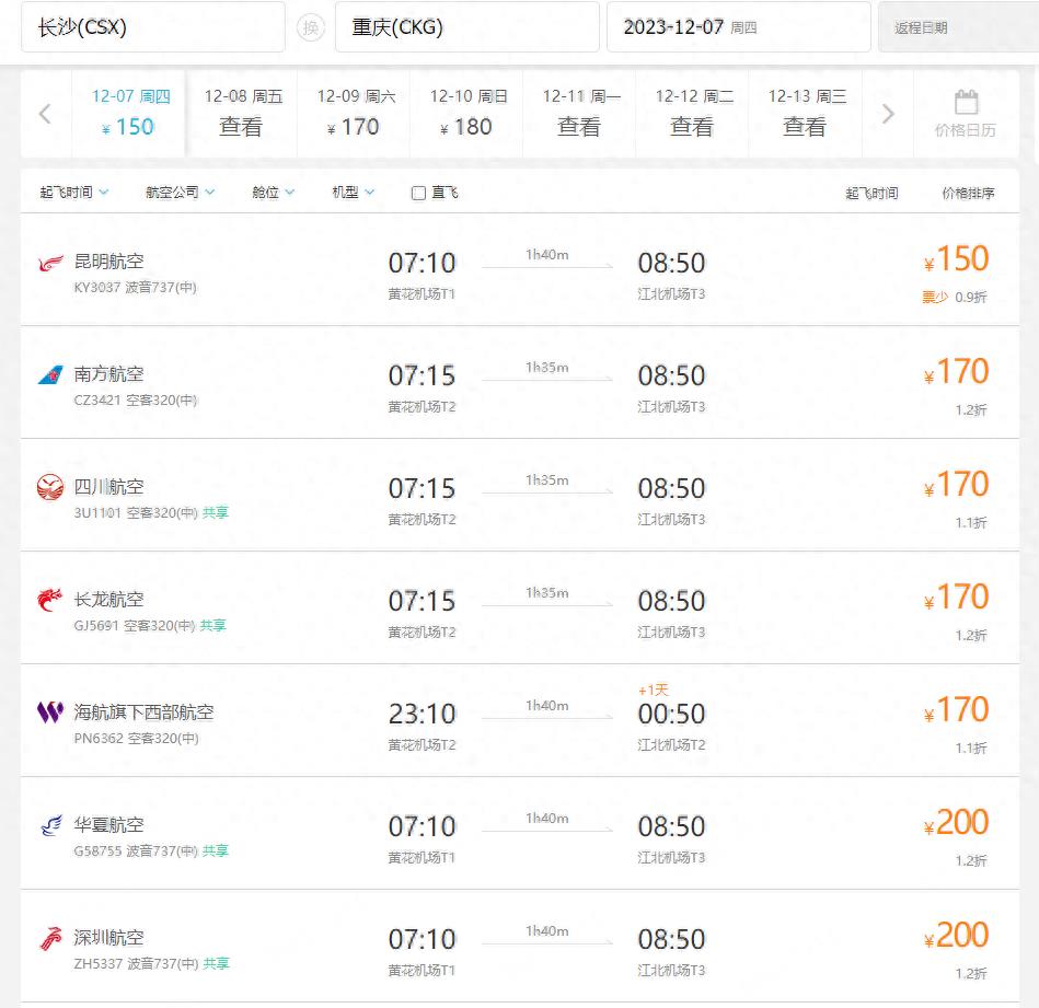 0.9折!长沙飞重庆只要150元,机票价格跌至低谷,网友:看得我都想飞了
