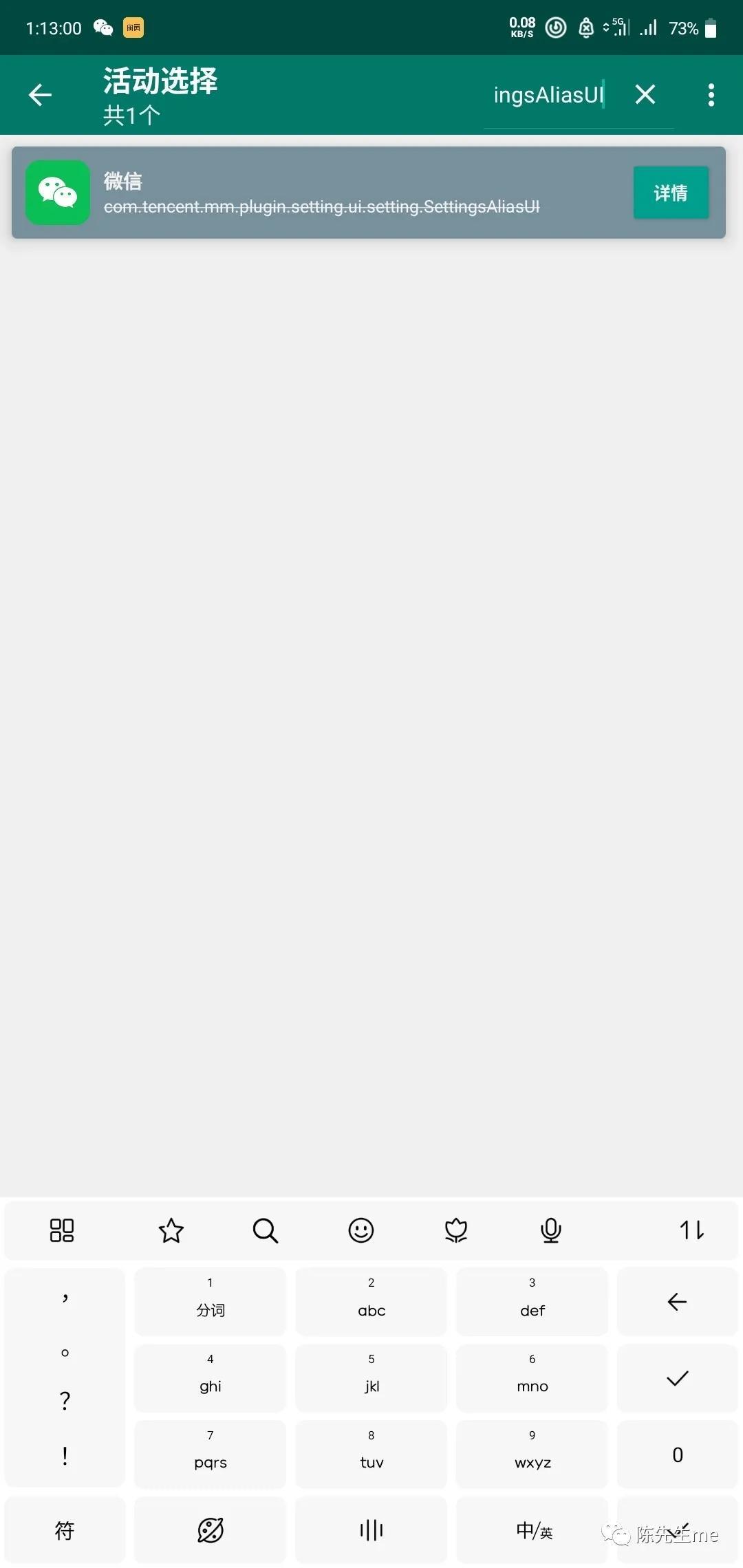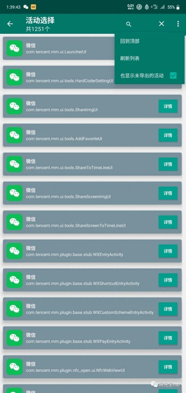 接着下载 创建快捷方式 这个软件,找到微信点右边的详情进去了,然后点击右上角把 显示未导出活动 勾上