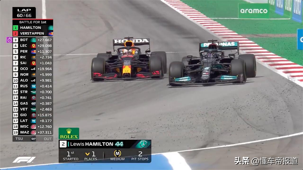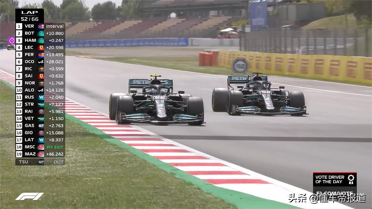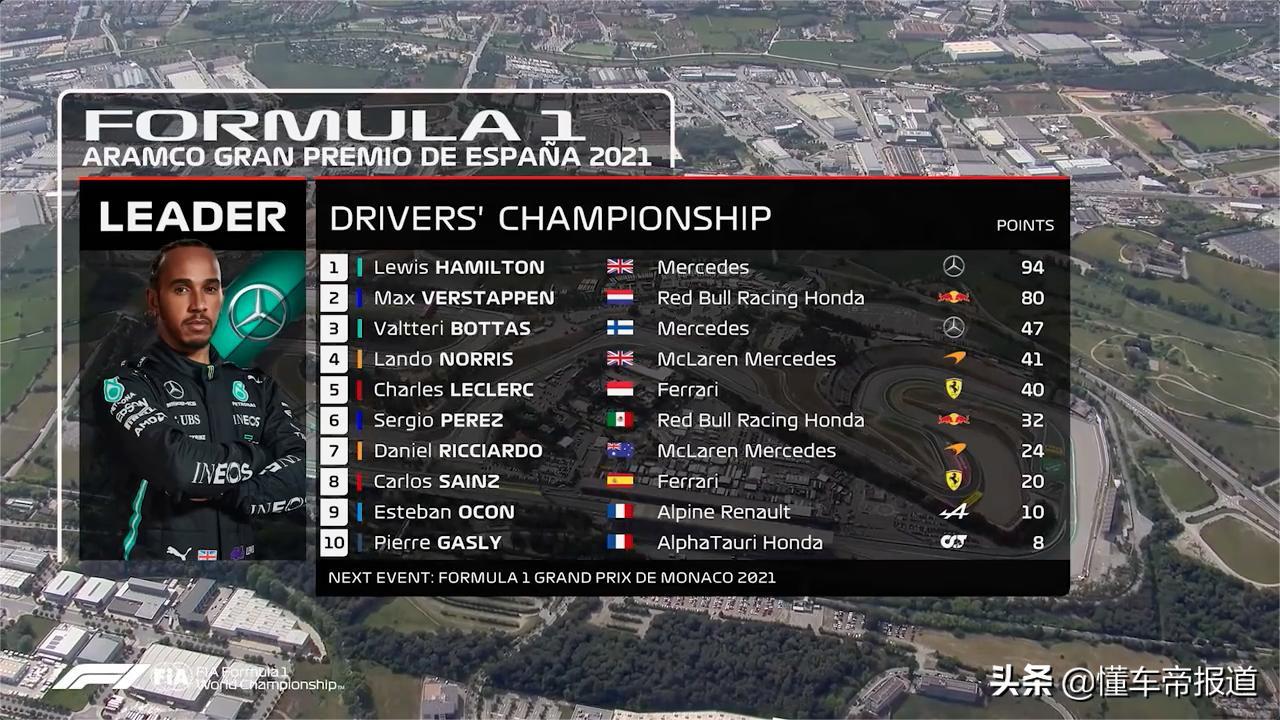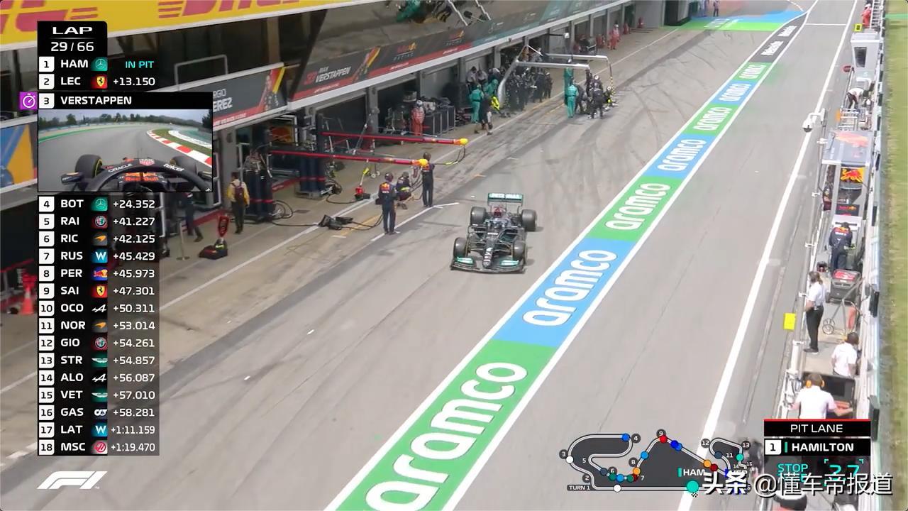[懂车帝原创 产品] 近日,世界一级方程式锦标赛(以下简称为F1)结束了西班牙分站的较量。比赛中,梅赛德斯车队的刘易斯·汉密尔顿(Lewis Hamilton)与红牛车队的马克思·维斯塔潘(Max Verstappen)在进站策略上稍有差异,最终汉密尔顿获得了他的第98个车手冠军。