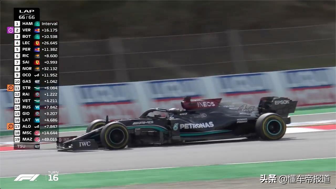 汉密尔顿冲线前领先维斯塔潘超过16秒