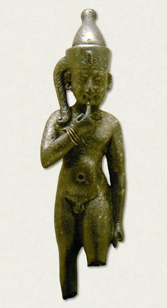 小荷鲁斯 以童子形象出现,戴着皇冠和青少年的侧发饰 公元前350-前30年