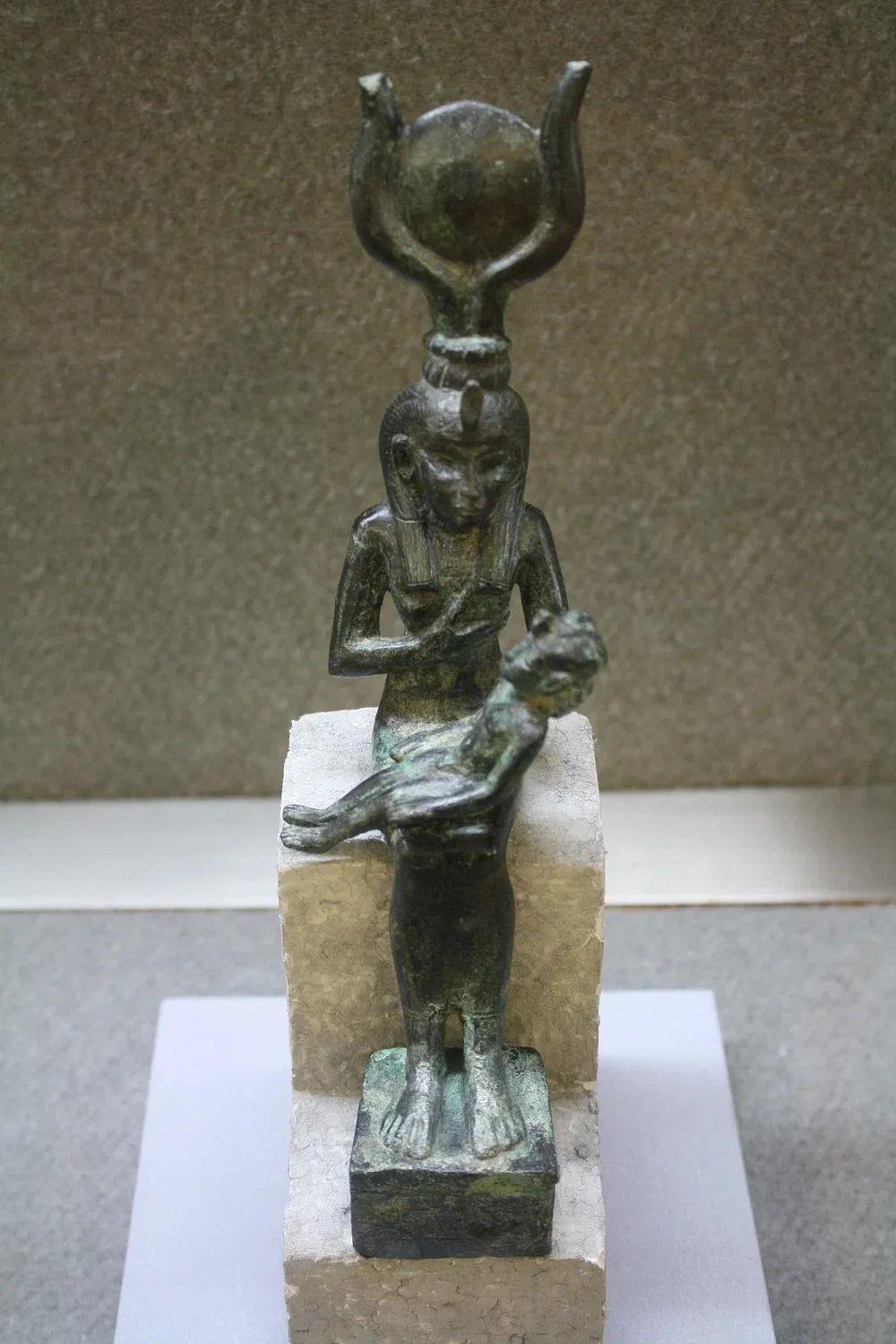 伊西斯护理荷鲁斯的青铜雕像 第25王朝 公元前775-前653年 米兰埃及博物馆
