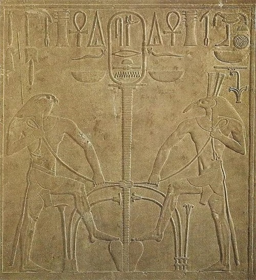 描绘荷鲁斯和塞特将上埃及和下埃及绑定在一起的浮雕