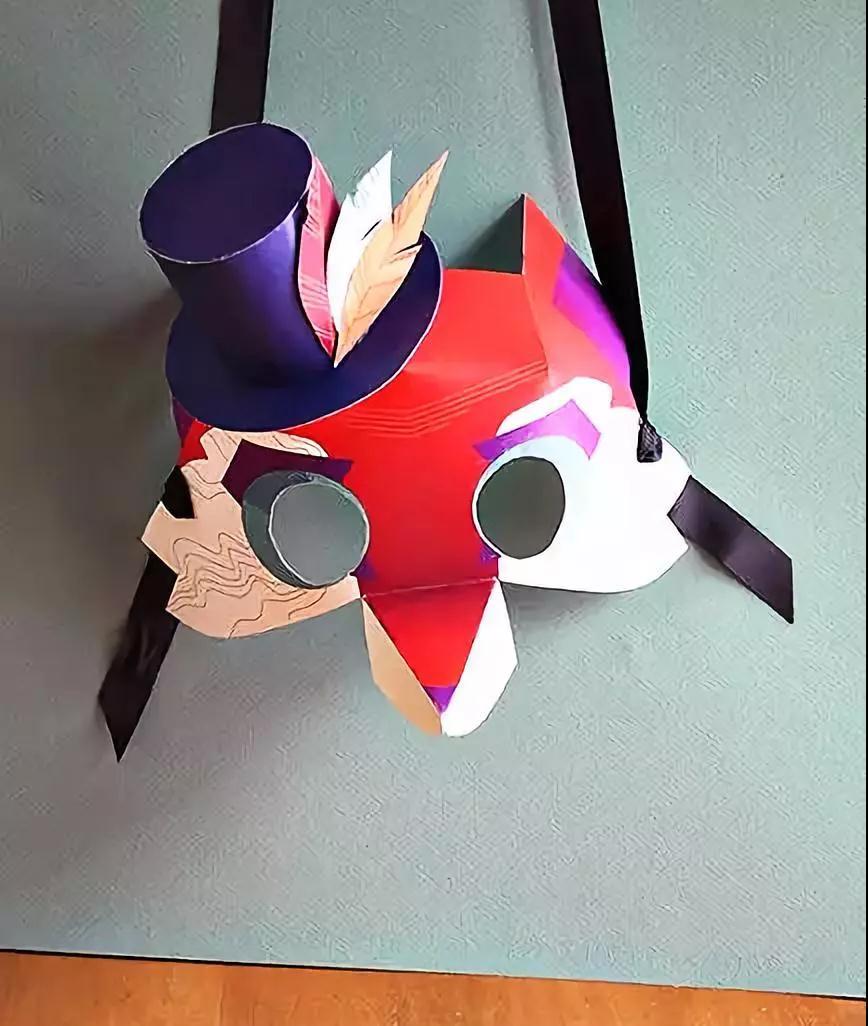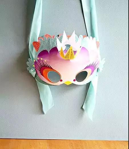 用卡纸和不织布组合成的猫头鹰面具,在鼻子上点个小点更俏皮可爱哦~