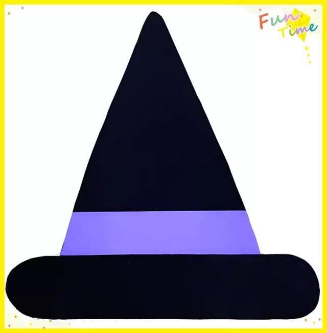 用黑色卡纸和紫色卡纸做一顶帽子。