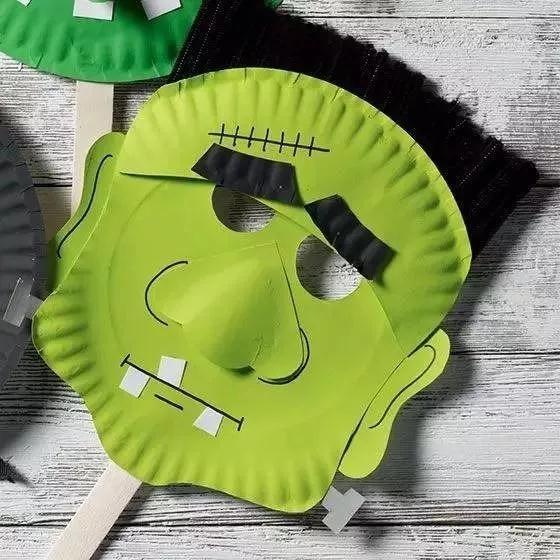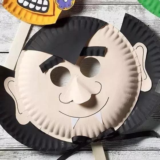 在面具上粘一个吸管。太棒了!你的面具做好了,戴上它去参加万圣节派对吧!