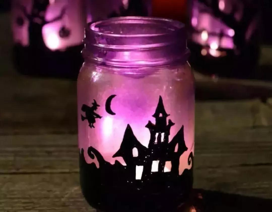 家里是否有闲置的玻璃瓶呢?简单装饰,就有了万圣节的气氛。