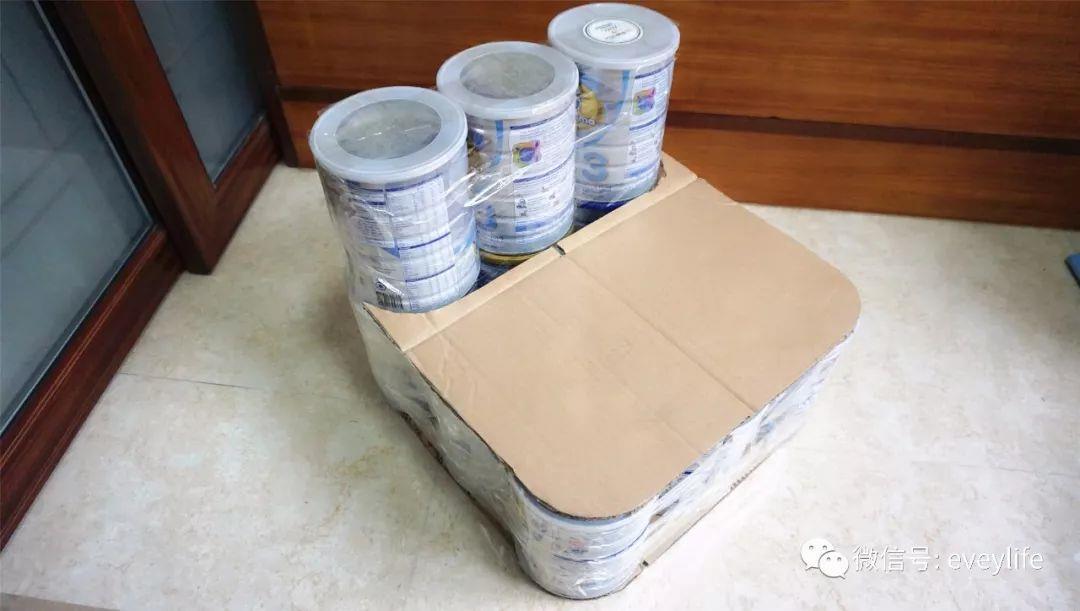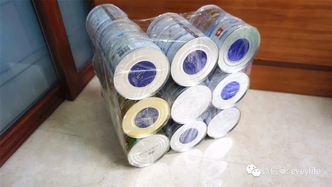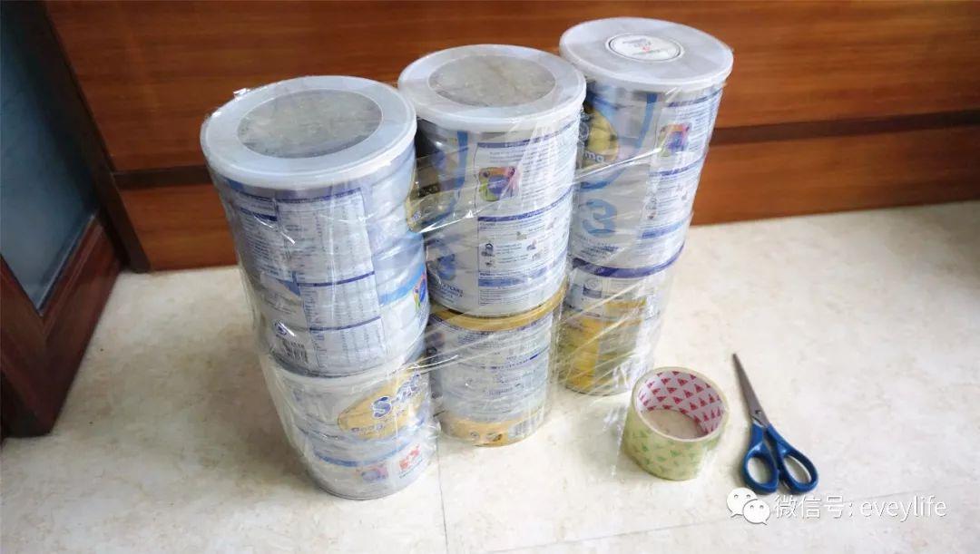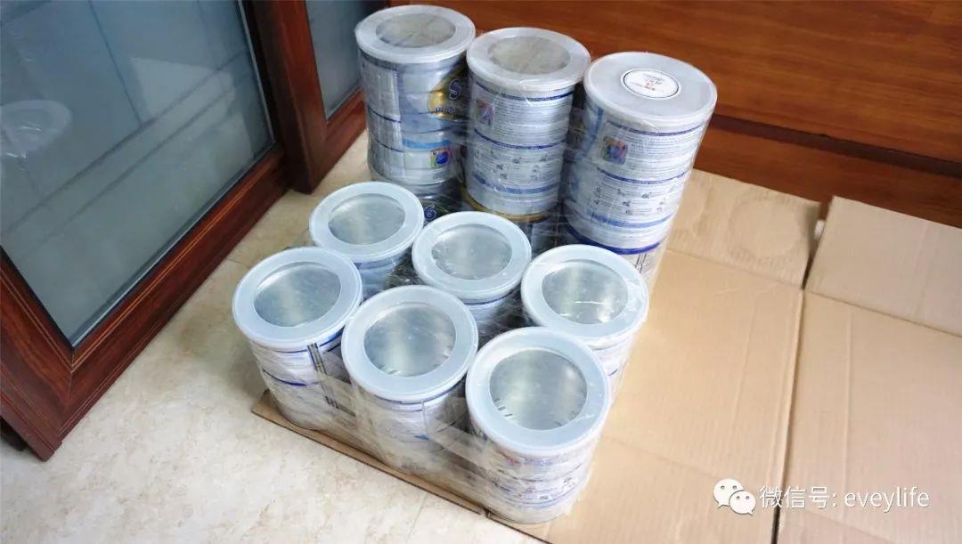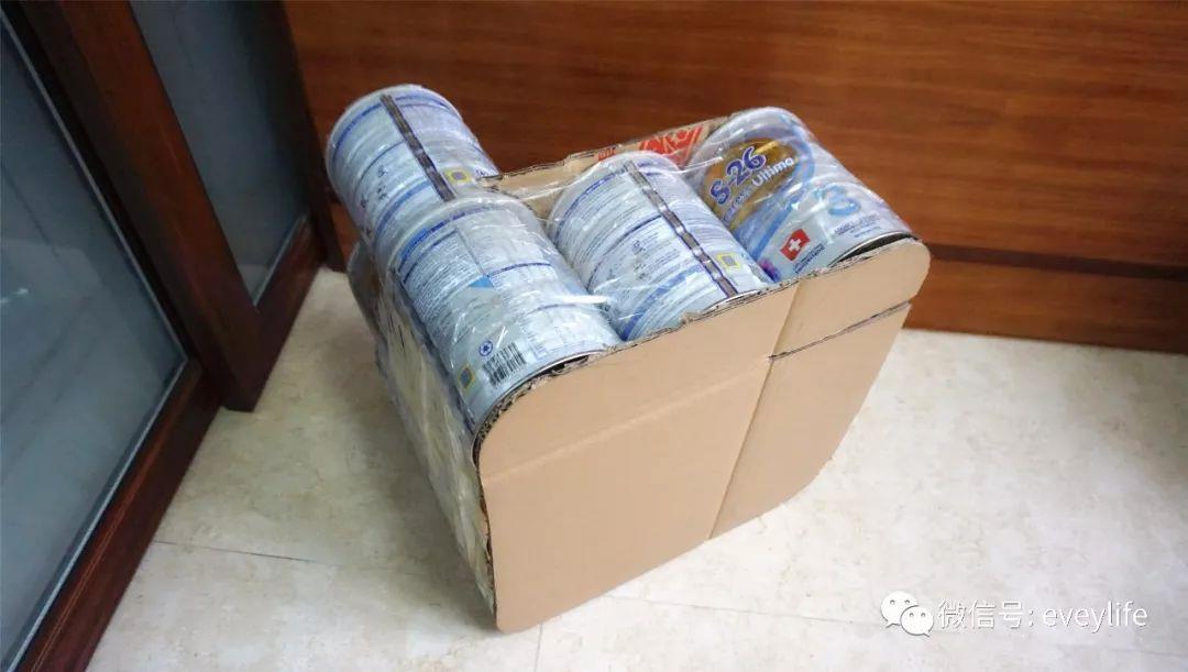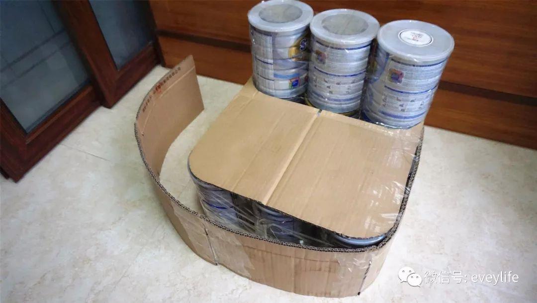 里面用的是这12个奶粉罐,然后里里外外包裹了三层,硬纸板+海绵+厚布。
