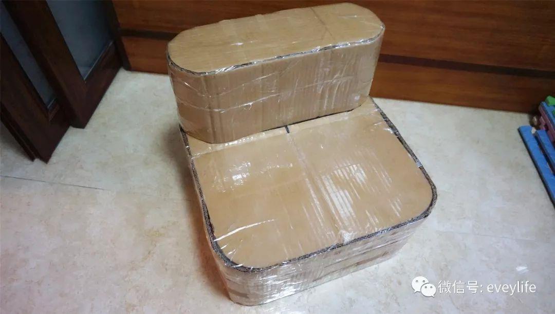 8、用胶带把侧面的硬纸板慢慢地固定好,把整个沙发包裹起来。