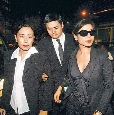 张国荣的挚爱唐鹤德,看着张国荣的遗像,悲痛欲绝,哭到全身无力,需要两个人搀扶