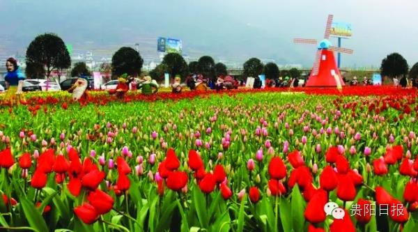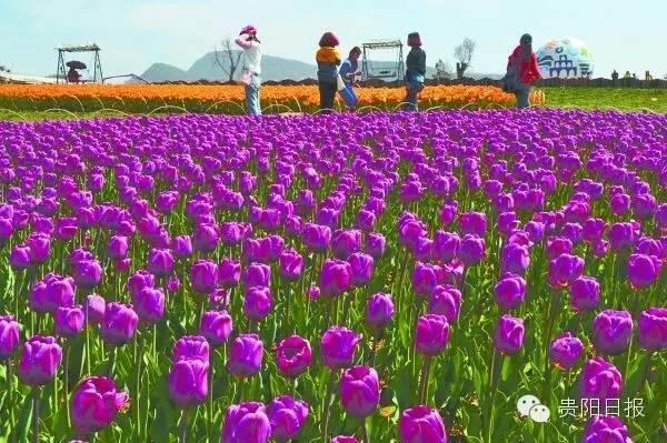 六盘水大河堡·凉都花海主要观赏郁金香,56万株郁金香中有闪光灯、烛光、香美人、小黑人、人见人爱、白雪公主等80余个品种分三期展现给游人,郁金香开过以后,将会有金鱼草、马鞭草、金盏菊、大花虞美人、滨菊、百合花等次第盛开,一年四季都有花海观赏。