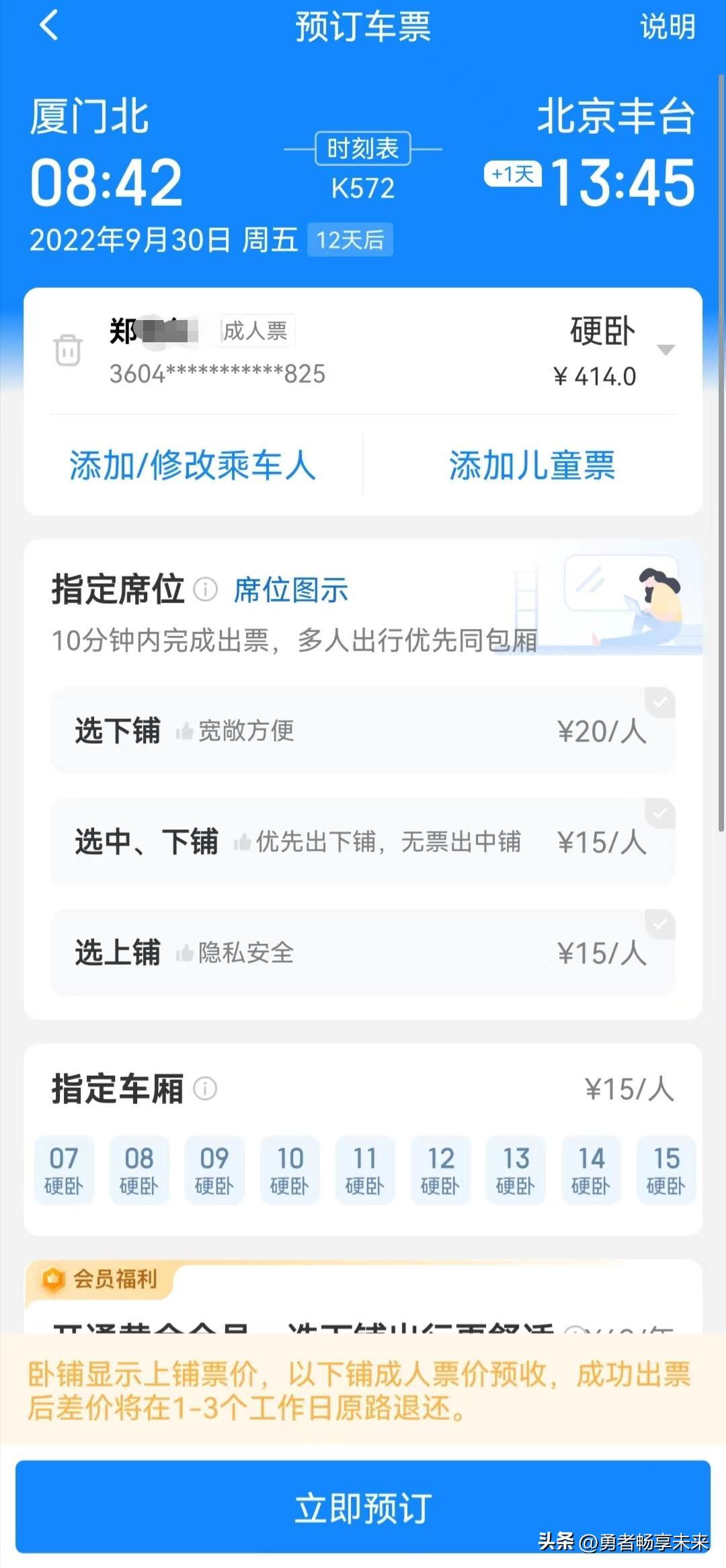 如果对所乘车次要席位选择的话,还要再次收费,以厦门到北京K572次为例,上铺收15元/人,中铺收20元/人、下铺收30元/人;如果不想花这个费用,可以机选席位,这样就不会被收费。