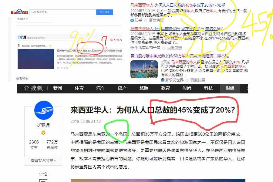 但是网上对于马来西亚华人在不同时期的人口占比说法从40%到90%不等,那么这些数字有没有依据?真实情况又是怎样的,哪一个可信?