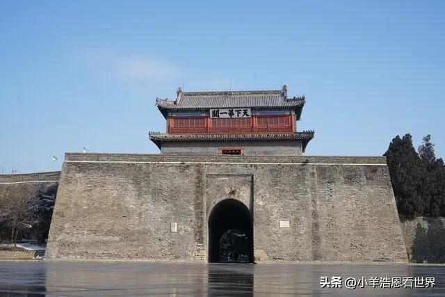山海关古称榆关,也作渝关,位于河北省秦皇岛市东北15公里。山海关汇聚了中国古长城之精华,素有中国长城“三大奇观之一”、“天下第一关”、“边郡之咽喉,京师之保障”之称,是迄今为止保存最完整的长城军事防御体系。山海关城周长约4千米,与长城相连,以城为关,城高14米,厚7米,有四座主要城门,多种防御建筑。包括“天下第一关”的箭楼、靖边楼、牧营楼、临闾楼、瓮城以及1350延长米的明代平原长城等景观。景区内最为引人注目的就是“天下第一关”巨匾,楼内外一共三块匾,一楼内悬挂的为原匾。
