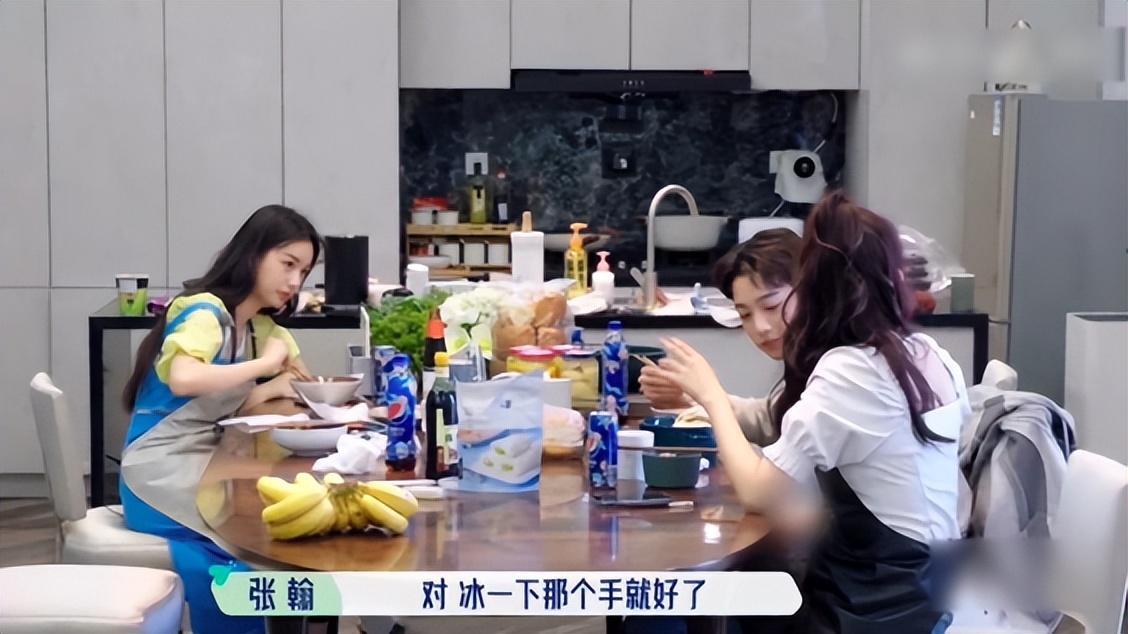 某期节目里,孟子义做饭时不小心把自己的手烫起泡了,然后几位嘉宾坐在一起吃饭时,她就开始冲其他人求安慰。