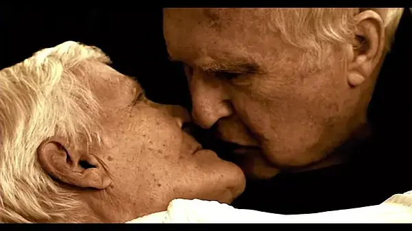 结局二是他们按后面那一段活到了恩爱的老夫妻,到了最后,也一直在赌,但是最后,朱利安吻了苏菲,是朱利安这一轮,他终于对苏菲说了我爱你,游戏是苏菲开始的,必须要朱利安说的才可能是游戏之外的,而且这一吻,连接出了曾经各种不存在的接吻情节,可以理解为,老了之后的这一个游戏以外的吻,终于来了,只是来得有点晚,这一吻本来可以是从第一次见面,到后面各个有可能结束这个游戏的时刻,但现在才来,更可以同时理解为,这一吻的重量相当深刻,包含了,对曾经每一次吻的弥补,而且这些吻的时间顺序,是倒流的,直到最初见面,时间越久,弥补的就越深刻。