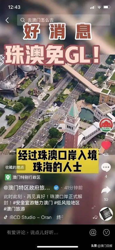 随着澳门疫情转趋稳定,旅游局因应珠澳口岸疫情防控措施的最新调整,全力推进宣传工作,包括通过微信、微博、小红书及抖音等,以及透过澳门网红在其平台,向内地居民宣传澳门安全宜游的信息,欢迎旅客畅游澳门。