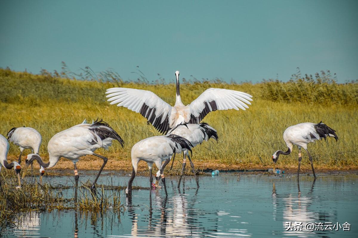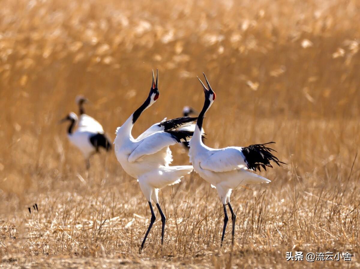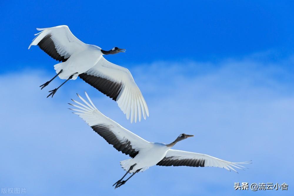 风起时,丹顶鹤向天唳声高唤,它在思考什么事情呢?惆怅地望向青青的田野和遥远的云水之间。
