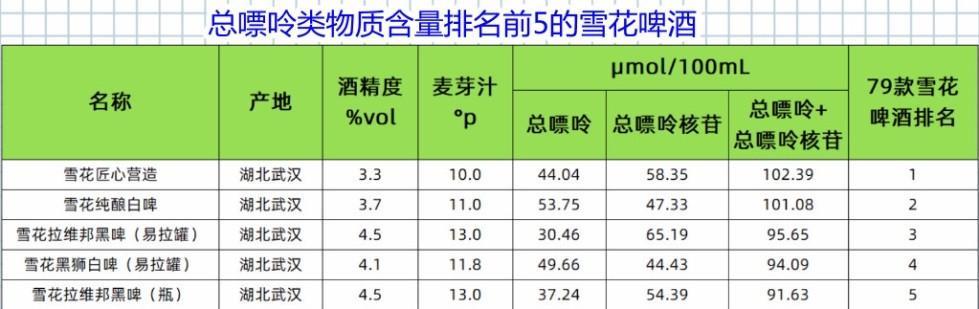 雪花啤酒专场,来猜猜哪款嘌呤类物质含量最高