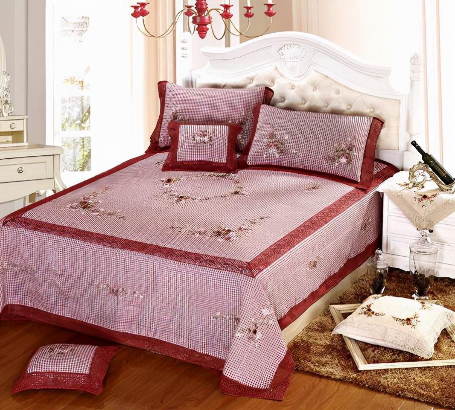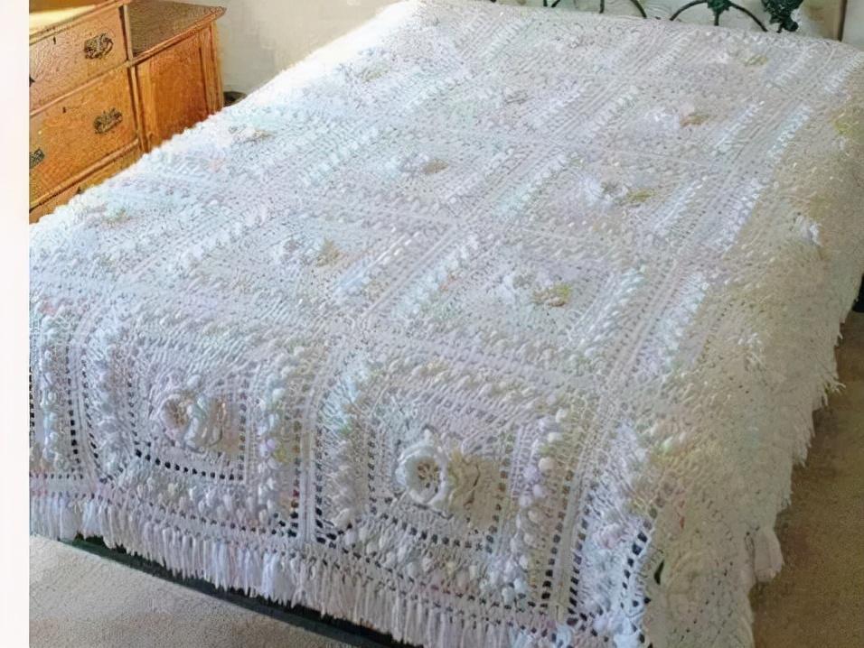 床罩就是一个布料的罩子,能够把整张床都遮盖住,主要功能就是防尘。床罩一般都会有充棉和绗缝定位工艺,整体看起来比较饱满、美观。有些人喜欢用钩针钩带有花纹图案的床罩,这一类的床罩大多以美观和装饰性为主。