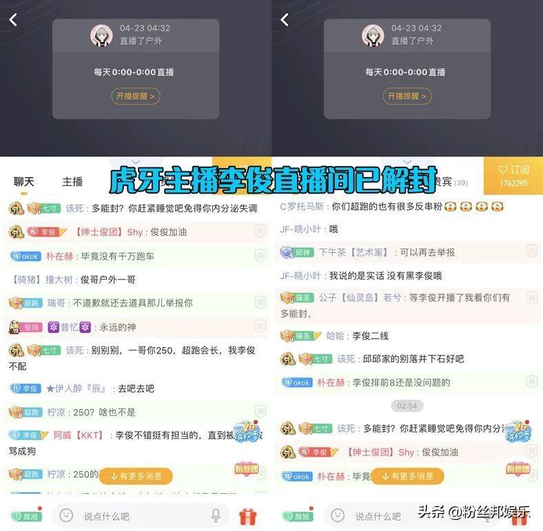 近日,有网友发现虎牙主播李俊的直播间已经解封,直播并未显示有关于封禁的字样。