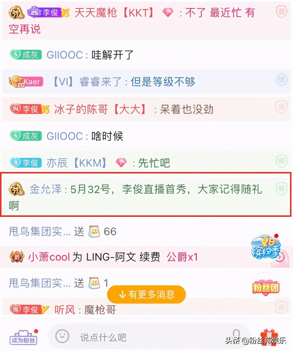 有粉丝在李俊直播间透露,5月23日他将回归直播首秀,不知后续会不会如期开播呢?