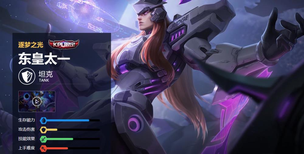 第二个KPL皮肤则是给到了东皇太一,这款东皇太一的“逐梦之光”当时也是非常的火爆,主要是把东皇太一的形象给机甲化了,效果也是非常的炫酷,而这款皮肤的代表选手则是信月痕,信月痕曾用东皇太一在比赛中拿下了不少的关键团战。