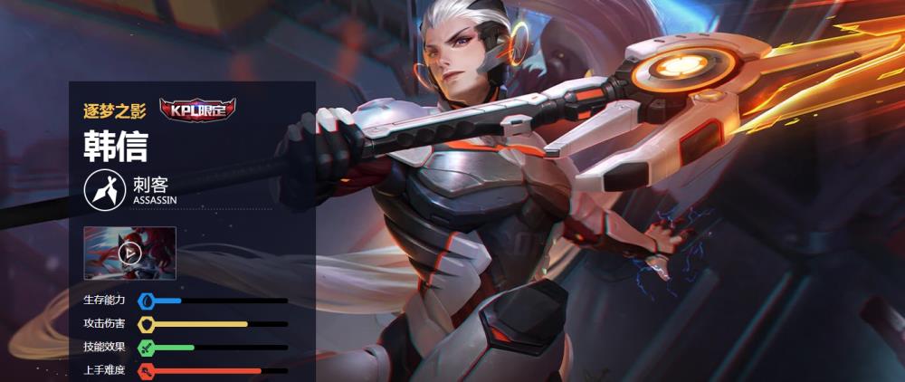 第五款KPL限定皮肤则是给到了梦泪的代表人物韩信,这款“逐梦之影”的韩信皮肤可以说完全是为了纪念梦泪当初一手韩信偷水晶拿下比赛胜利的操作,而当初水晶是不存在任何机制的,不像是现在没有兵线在水晶面前对于水晶的伤害减少,而正是韩信这一操作让策划直接对水晶进行了紧急加强。