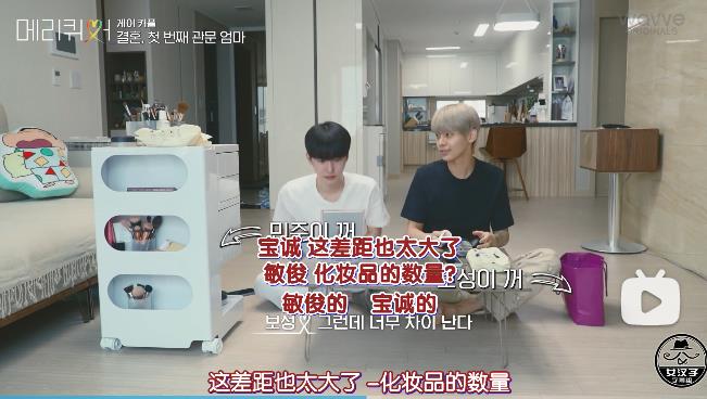 敏俊的化妆品甚至要用小推车装,比我的都多...