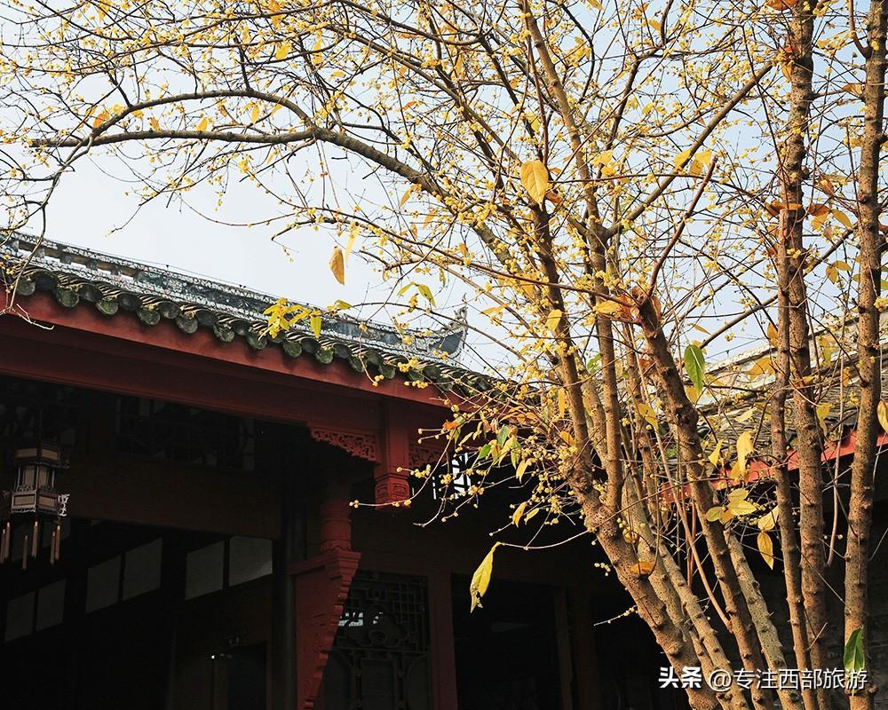 庭院中有蜡梅、葡萄、芭蕉、洋槐等百年花木。正值两棵蜡梅凌寒绽放,冷香馥郁。