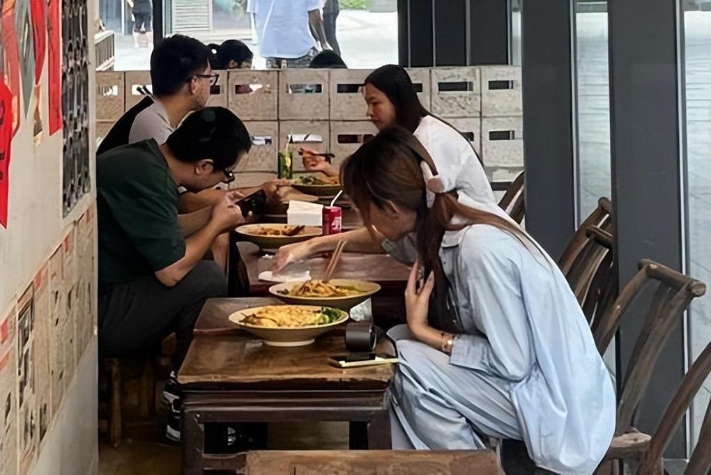 9月13日,有网友偶遇了在面馆吃面的浪胃仙。照片中的他,穿着灰色衬衣,扎着马尾辫,戴着墨镜,一个人点了两份面,趴在桌子上津津有味地吃着。虽然只能从侧面拍摄到他,但可以明显看出他的皮肤松垮,脖子上也有很多垂下来的肉肉。