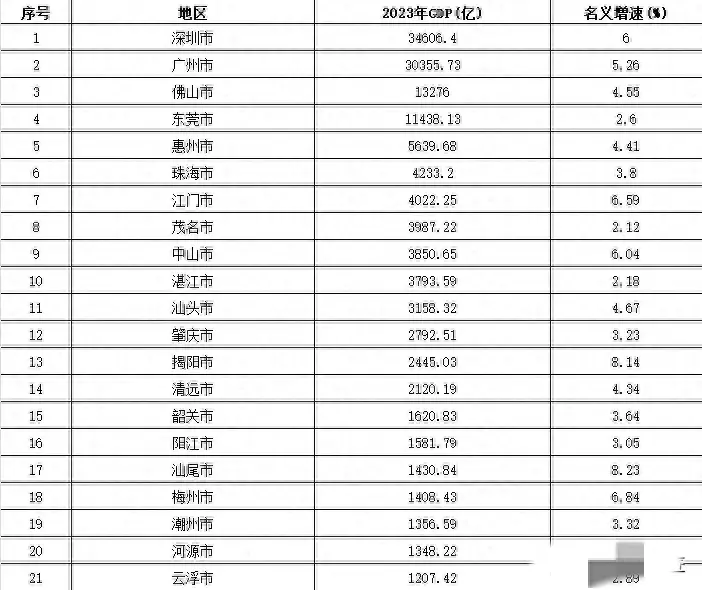广东21个地市GDP全部出炉:东莞约为珠中江三城之和,茂名掉到第8
