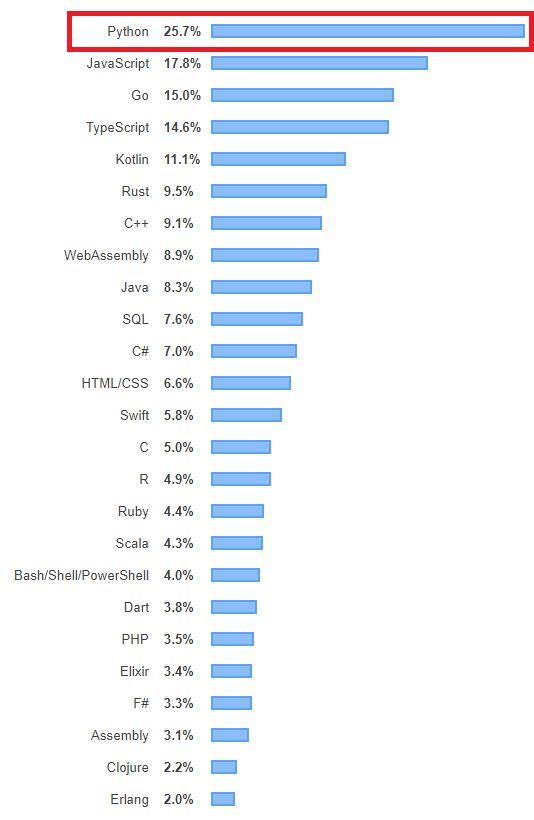 在知名技术交流网站Stack Overflow在2019年年初推出的开发人员调查报告中,有四分之一的开发者表示,Python是他们最想学习的编程语言,这也是Python连续三年获得这个榜单的第一名。