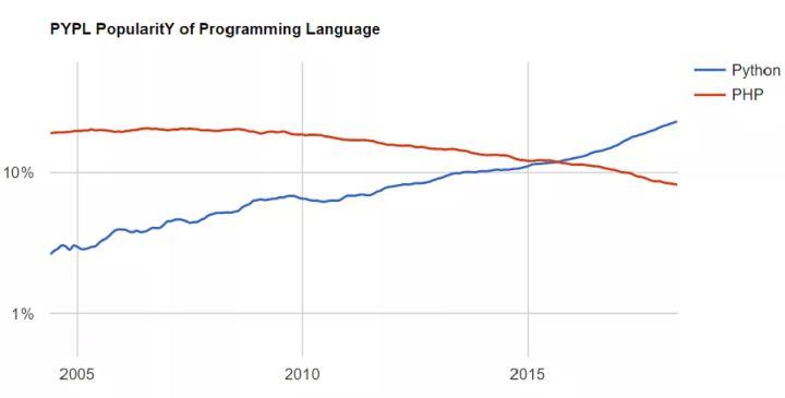 Python为网络上搜索教程频率最高的编程语言,甚至比一直以来的“霸主”PHP都要高。