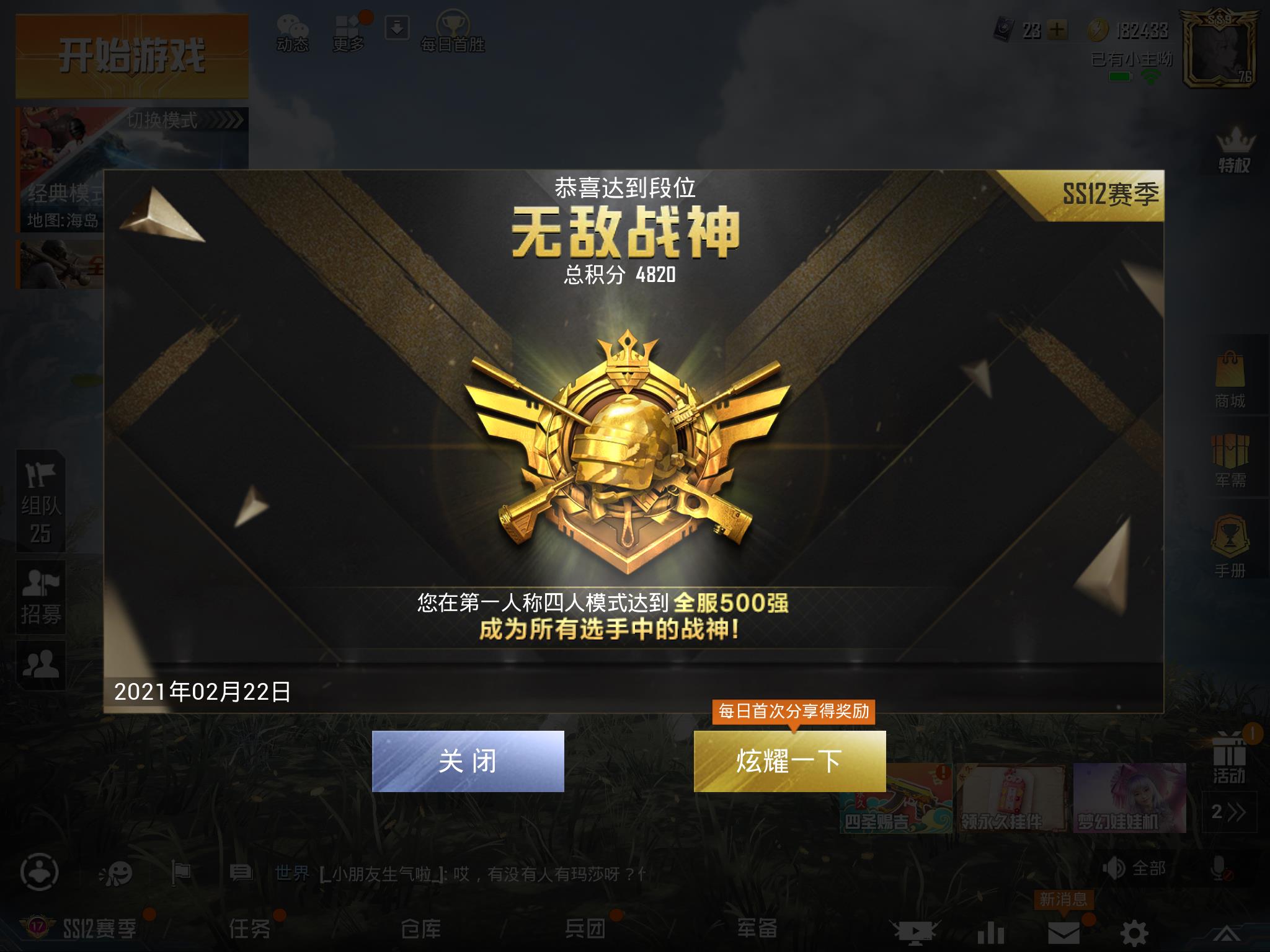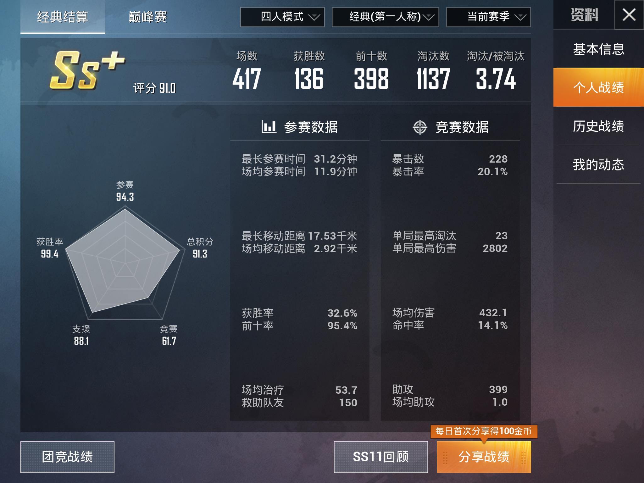上图就是小玩皮这个赛季的一称四排战神战绩,技术很菜(技术玩家轻喷),总而言之: