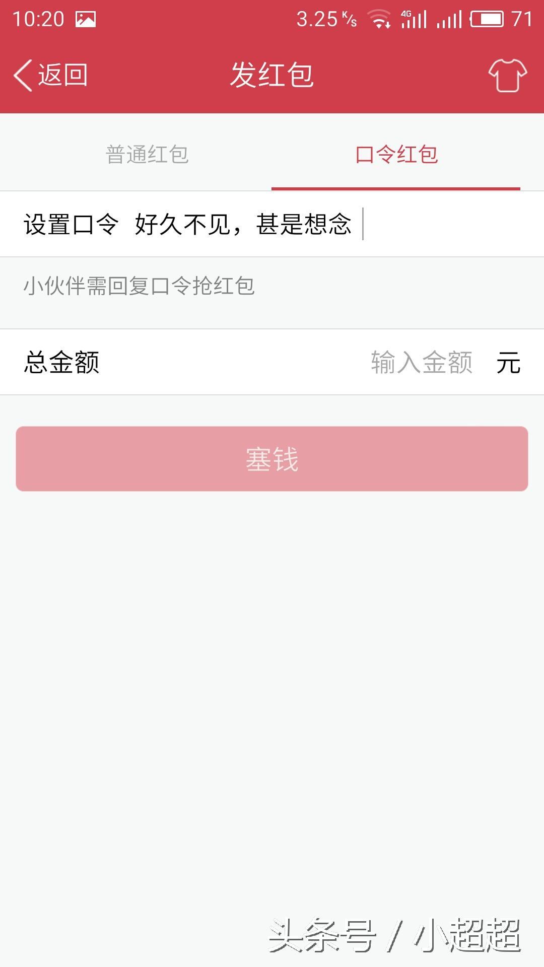 再打开我们发红包的窗口,选择口令红包,粘贴 。下面填上我们发红包的金额