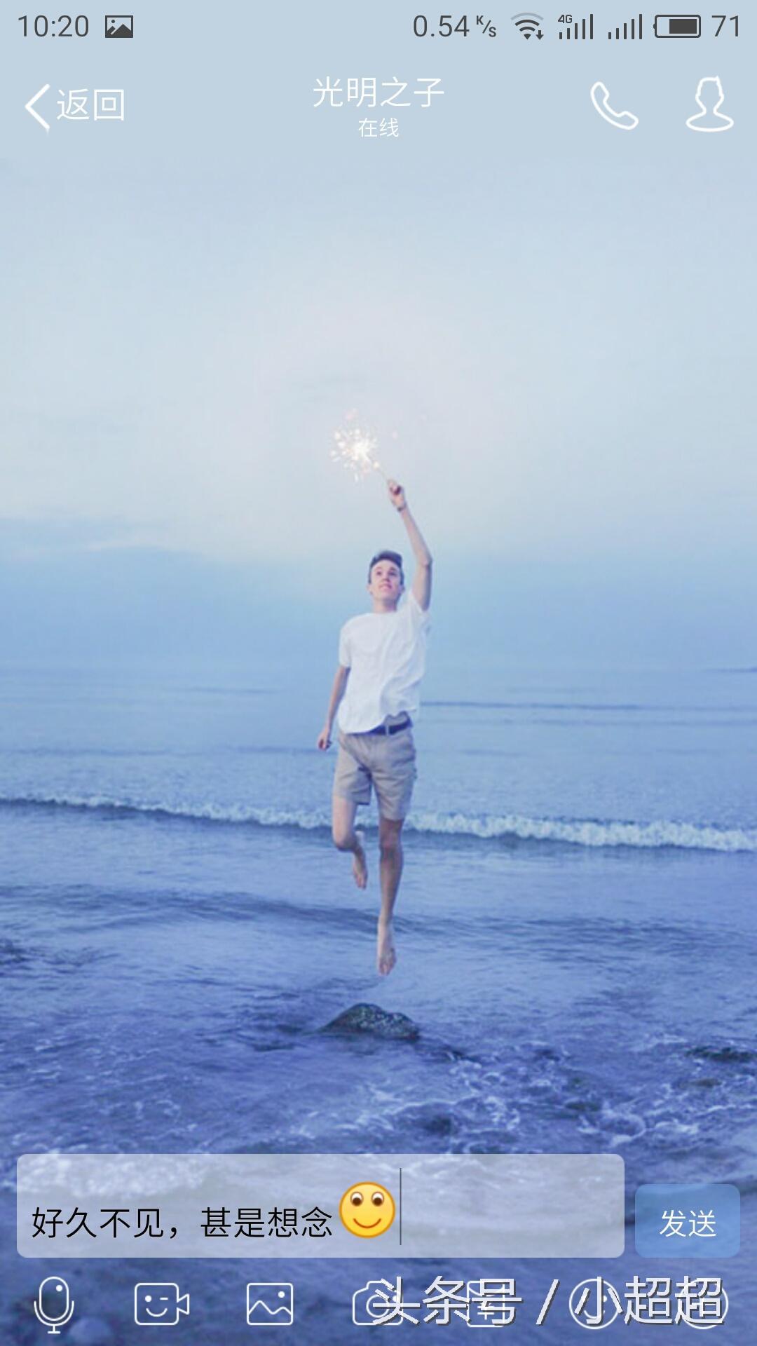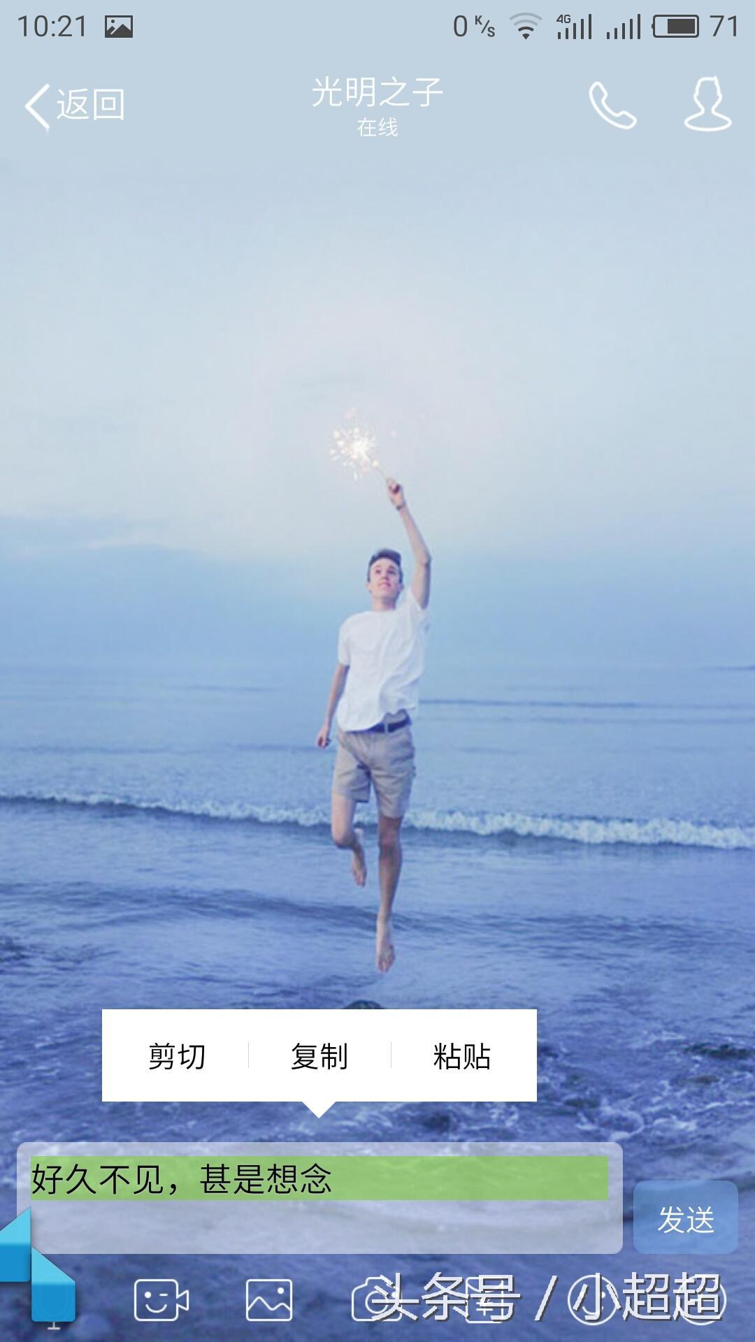 接下来,我们在消息处写上一句话,比如说:“”好久不见,甚是想念“”,然后我们在文字后面加一个表情(一般我都会选择第一个微笑表情)