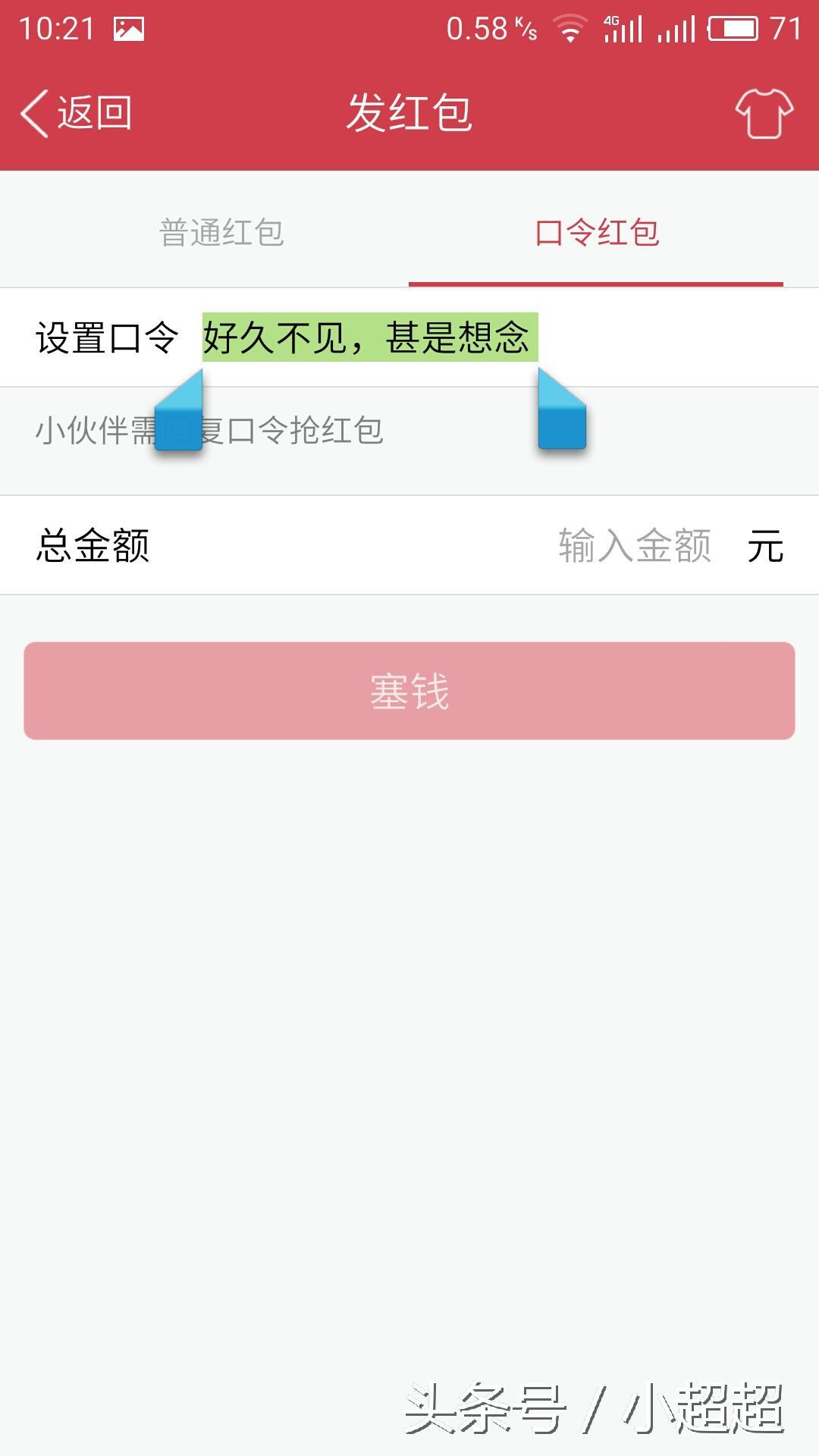 然后,我们把它全部选择→剪切。打开我们的红包窗口,选择口令红包(记住表情和文字一起选择哦)