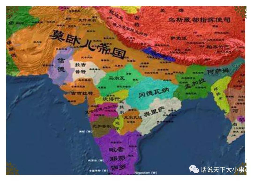 16世纪初期,印度是一个分裂为许多小公国的国家。当时的统治者为劳迪王朝(1451一1526),是阿富汗人所建。这个史称德里苏丹国的王朝,统治范围狭小,形同地方王公,无力统一全国,也没有遍及印度南部领域。北印度分裂为孟加拉、贡德瓦那、古吉拉特和拉奇普特4个大的独立的王国,长期混战。印度北边为喜马拉雅山脉,极难跨越。东西两边也有山脉与外界隔离。南印度是一个伸入印度洋的大半岛,东为孟加拉湾,西为阿拉伯海。除西北的开伯尔等山口可与中亚相通外,印度很难与外界接触。开伯尔山口,座落在兴都库什山脉,山口海拔为1000多米,隘道狭窄,最窄处只有12米宽,它是南亚次大陆和中亚地区以至同欧洲陆上交通的捷径。