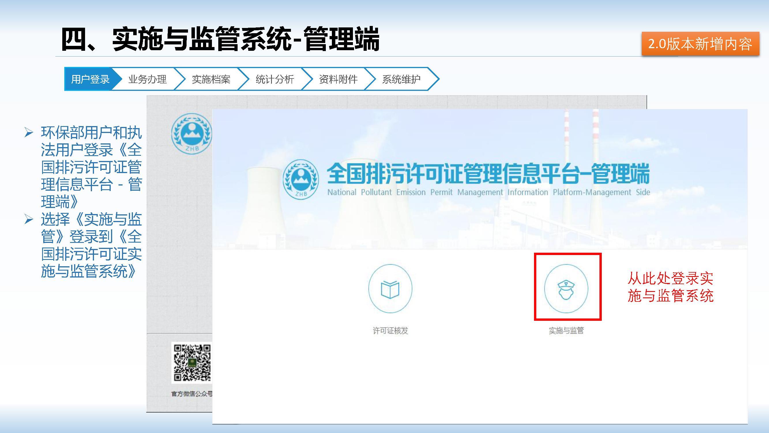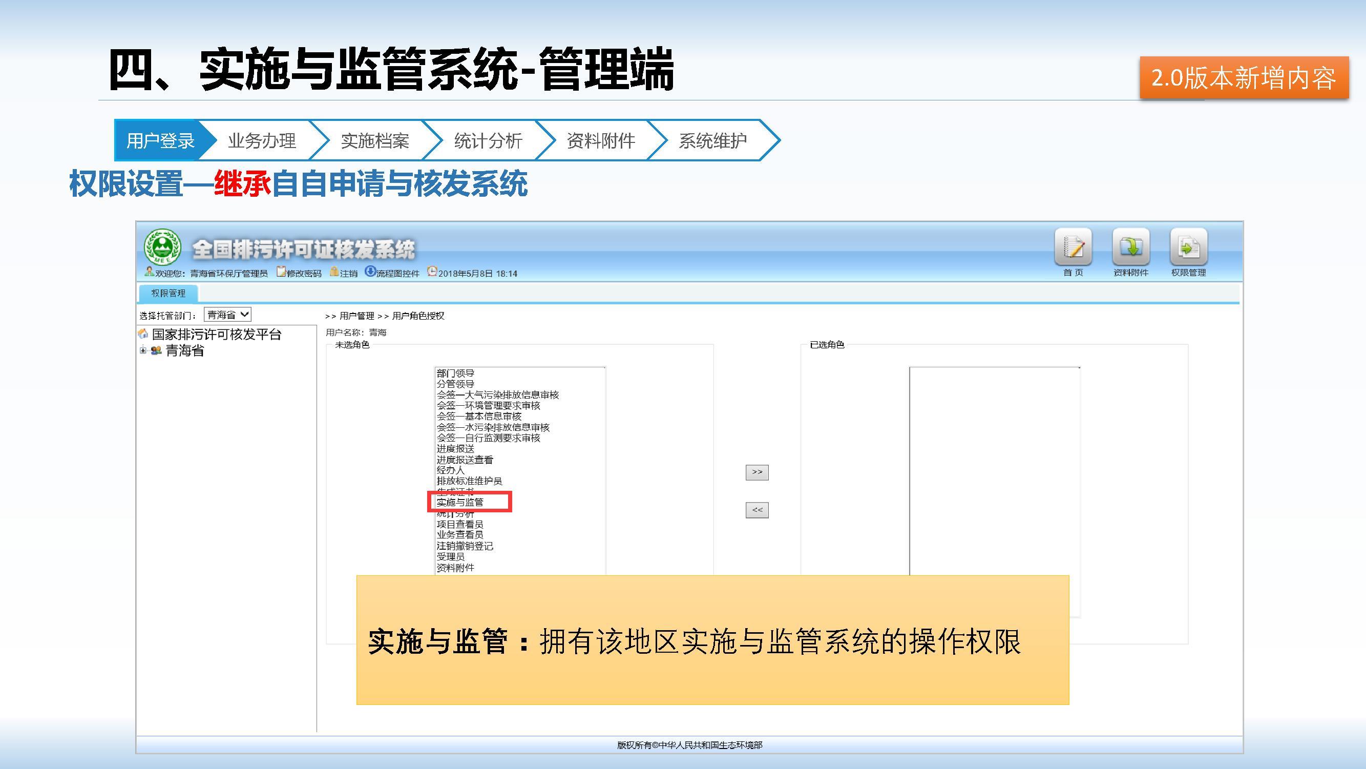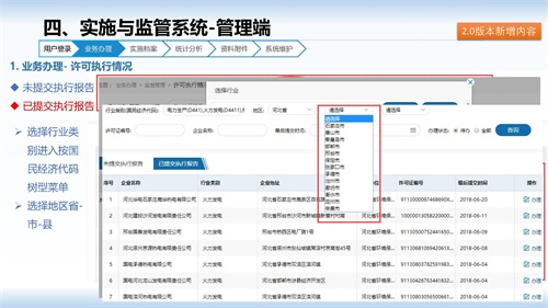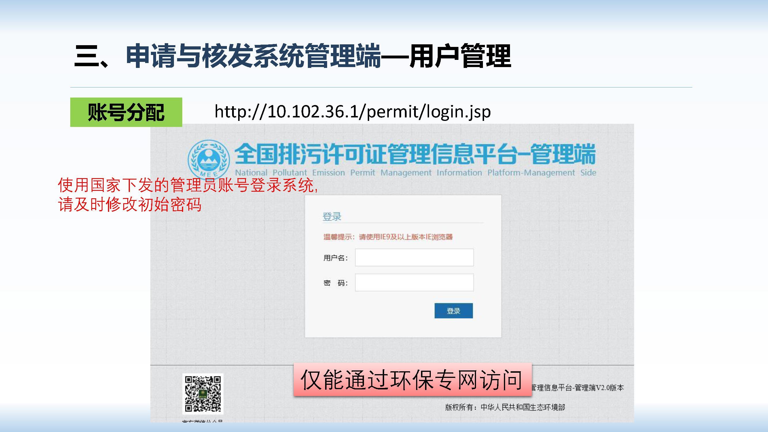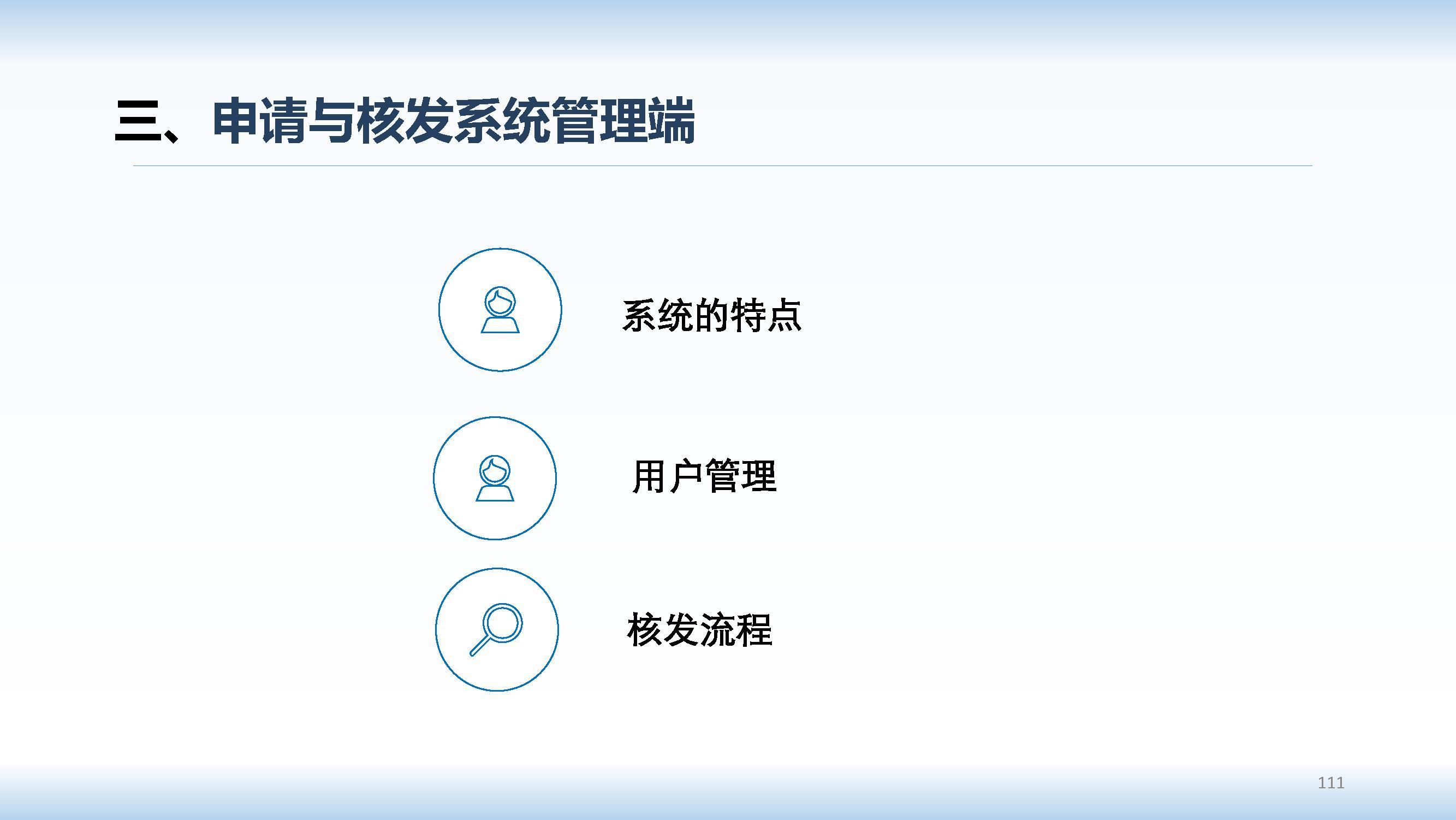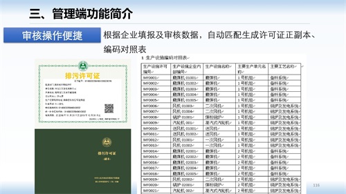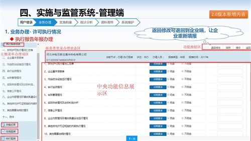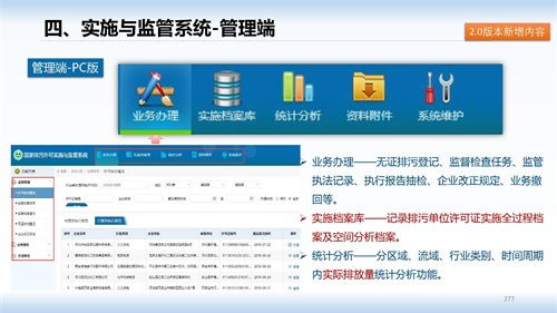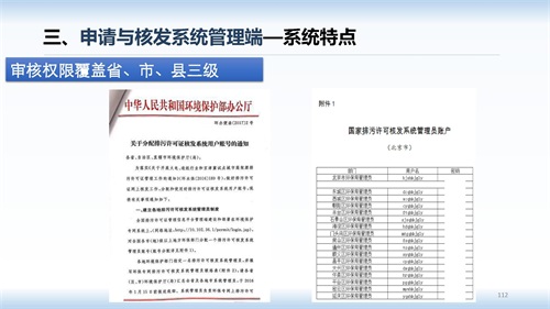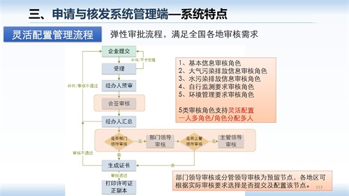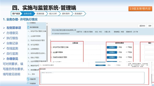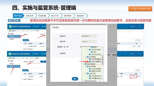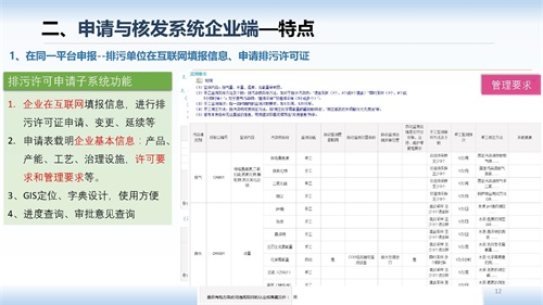 然后,介绍了申请与核发系统管理端的特点,包括系统管理端和管理端的特点。 第四:对监督管理端进行了介绍。