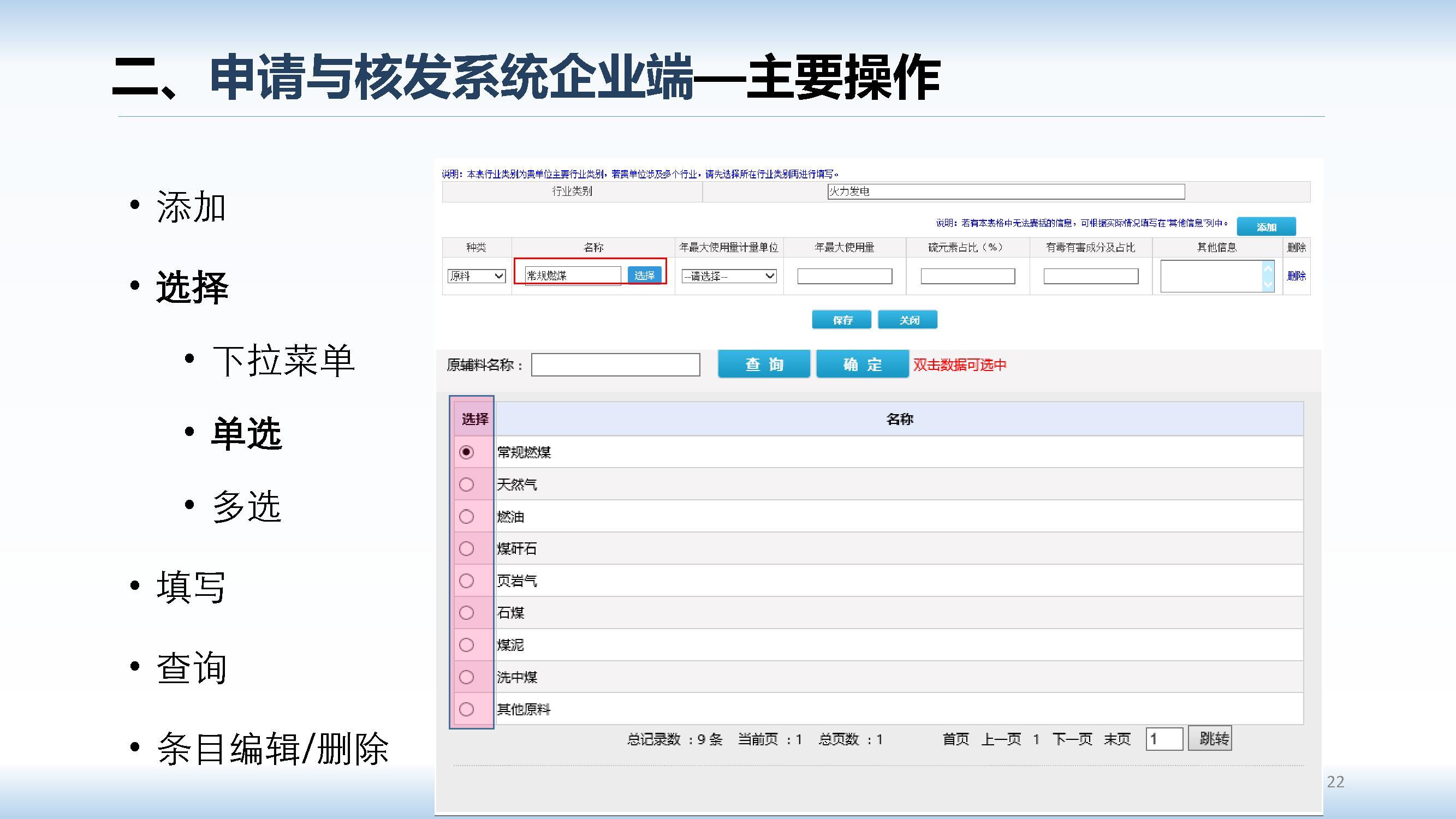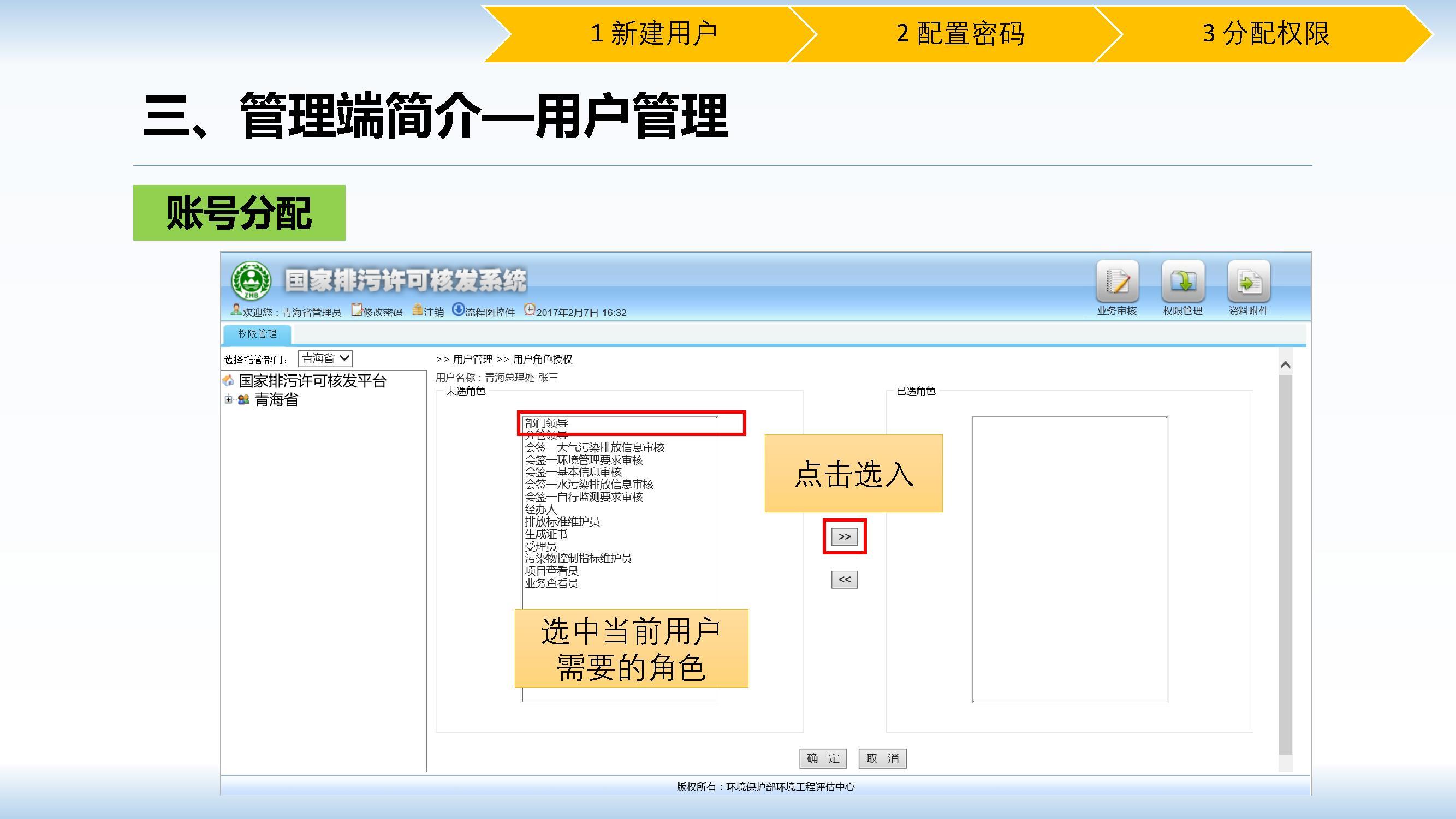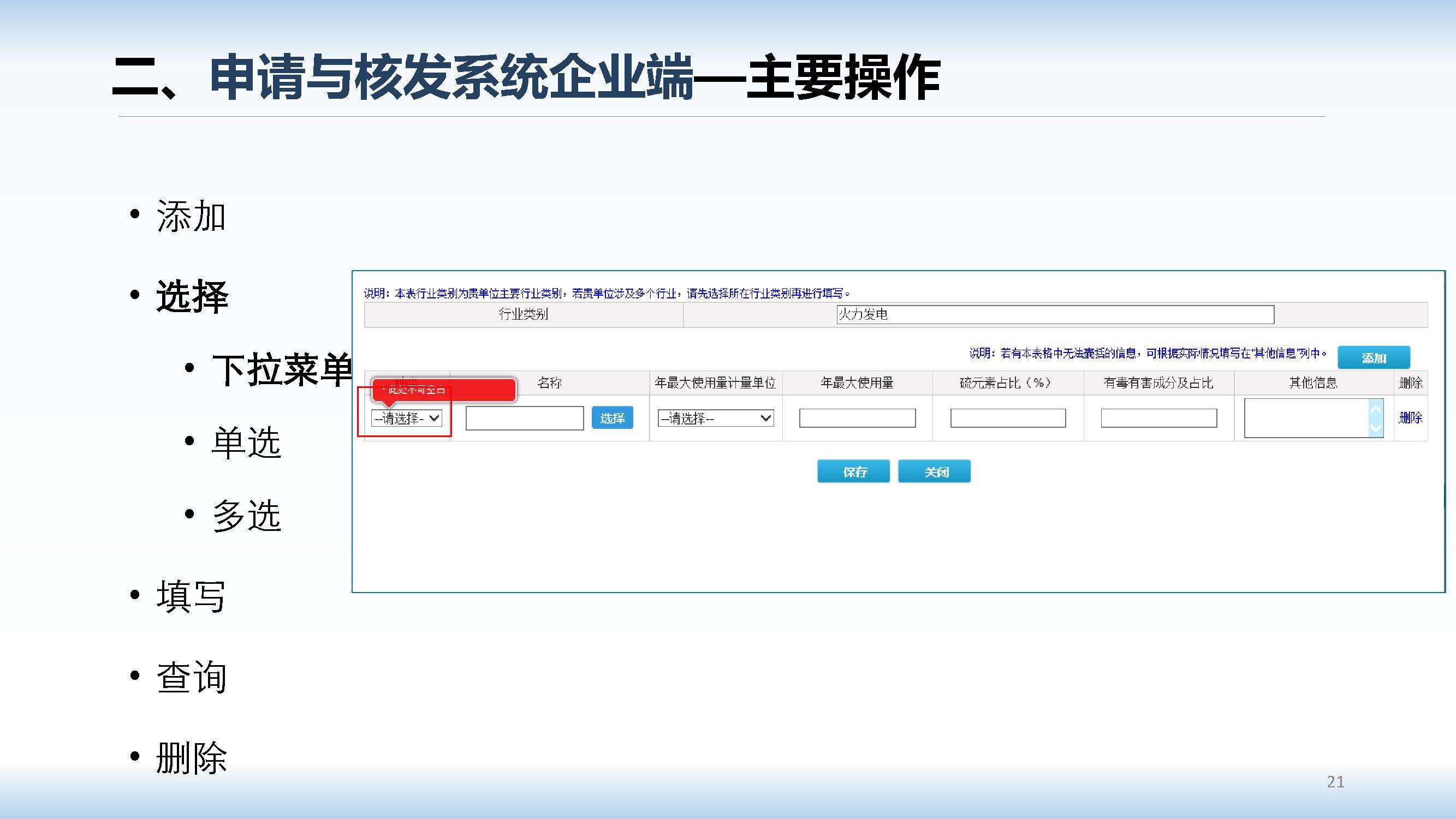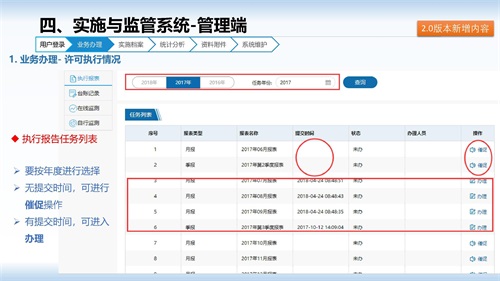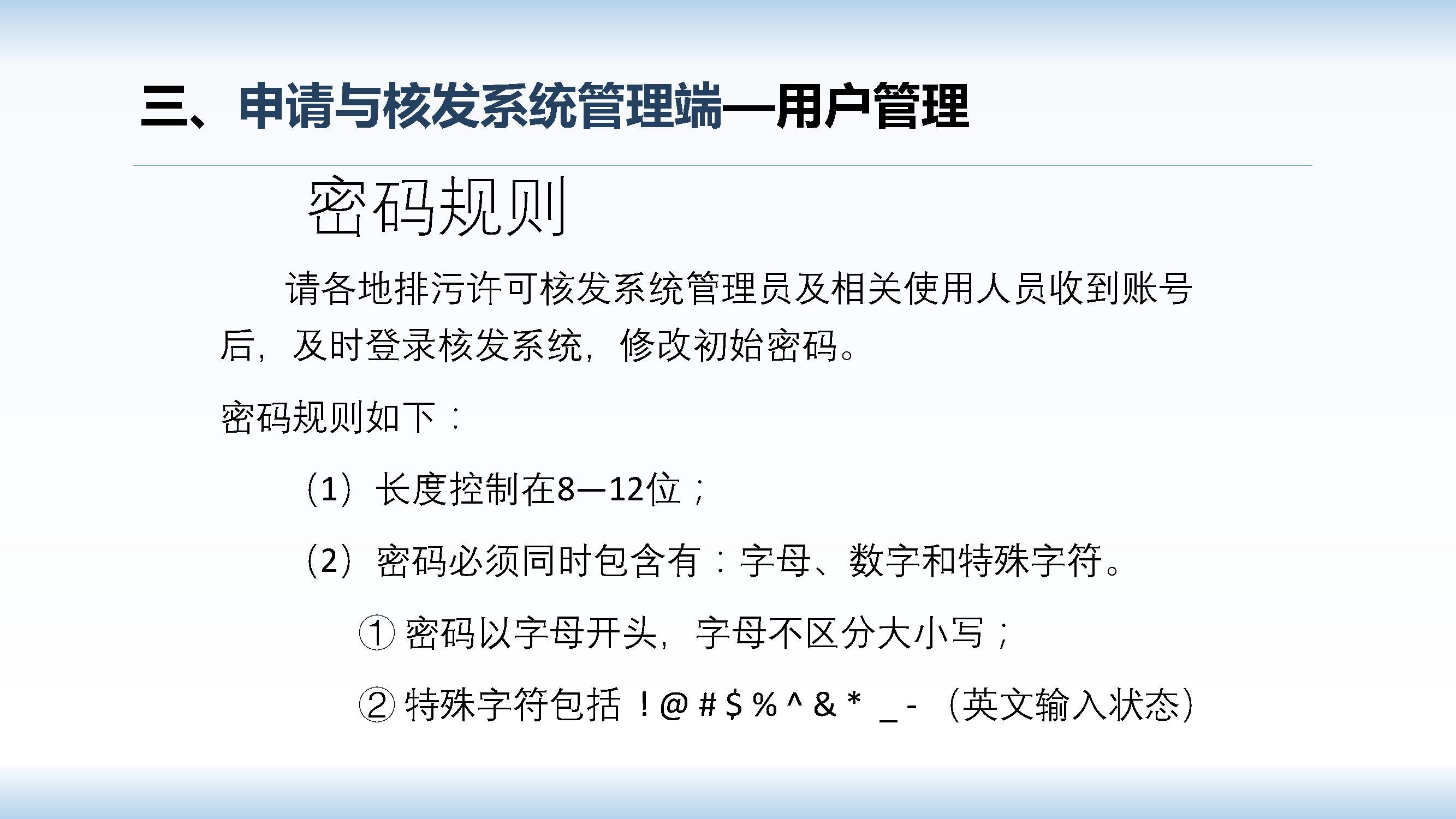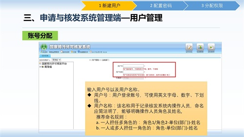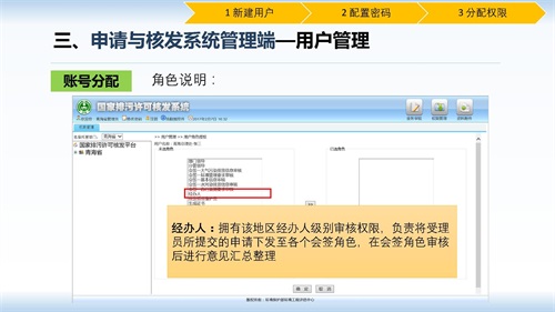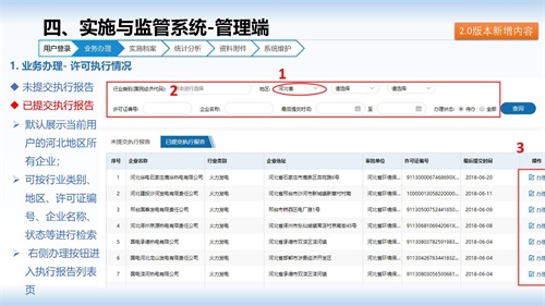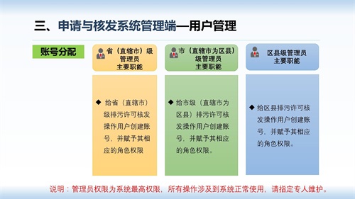 然后,介绍了申请与核发系统管理端的特点,包括系统管理端和管理端的特点。 第四:对监督管理端进行了介绍。